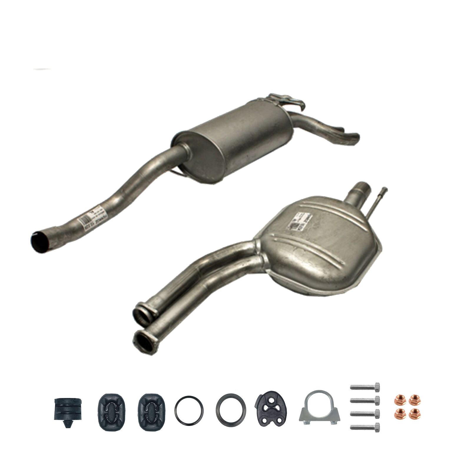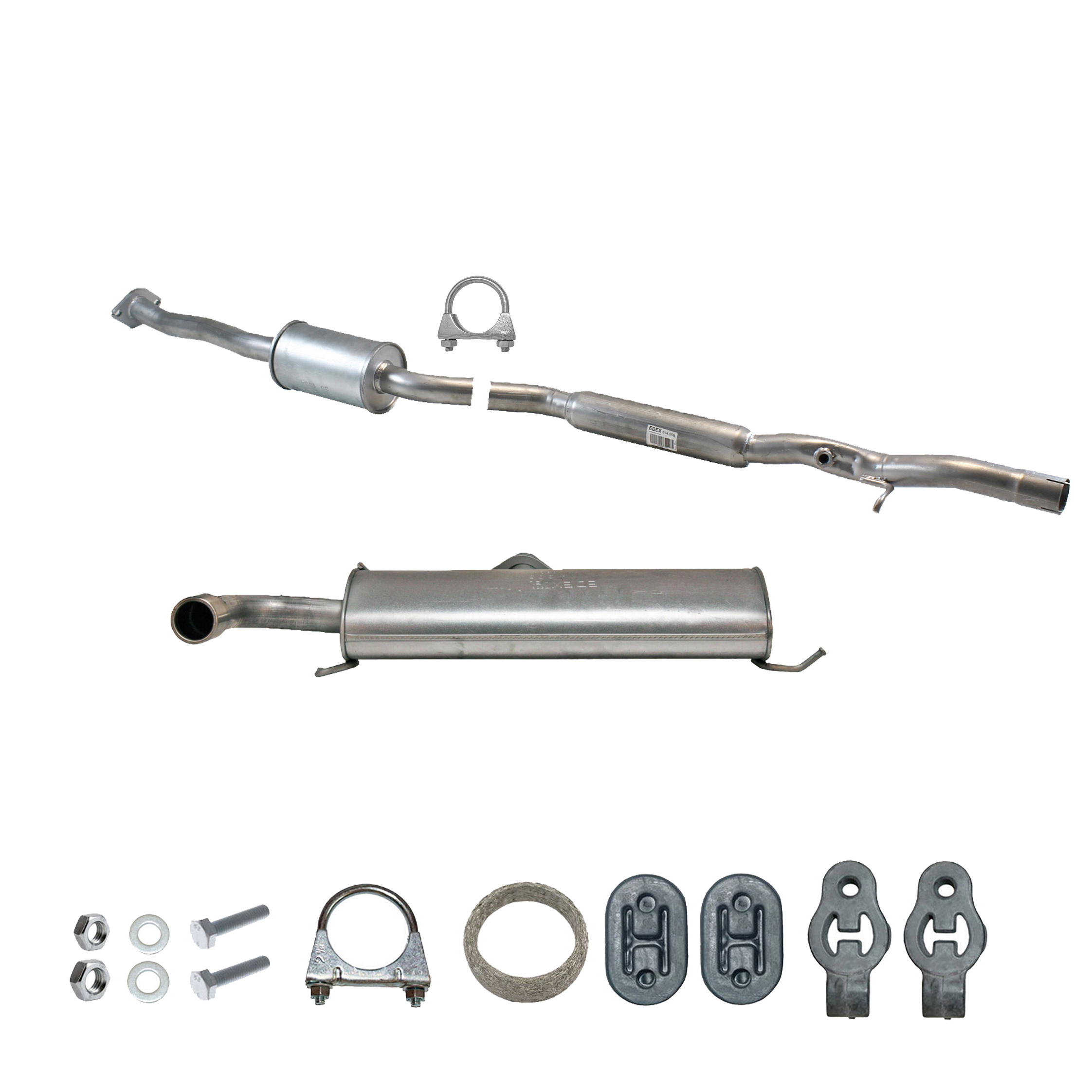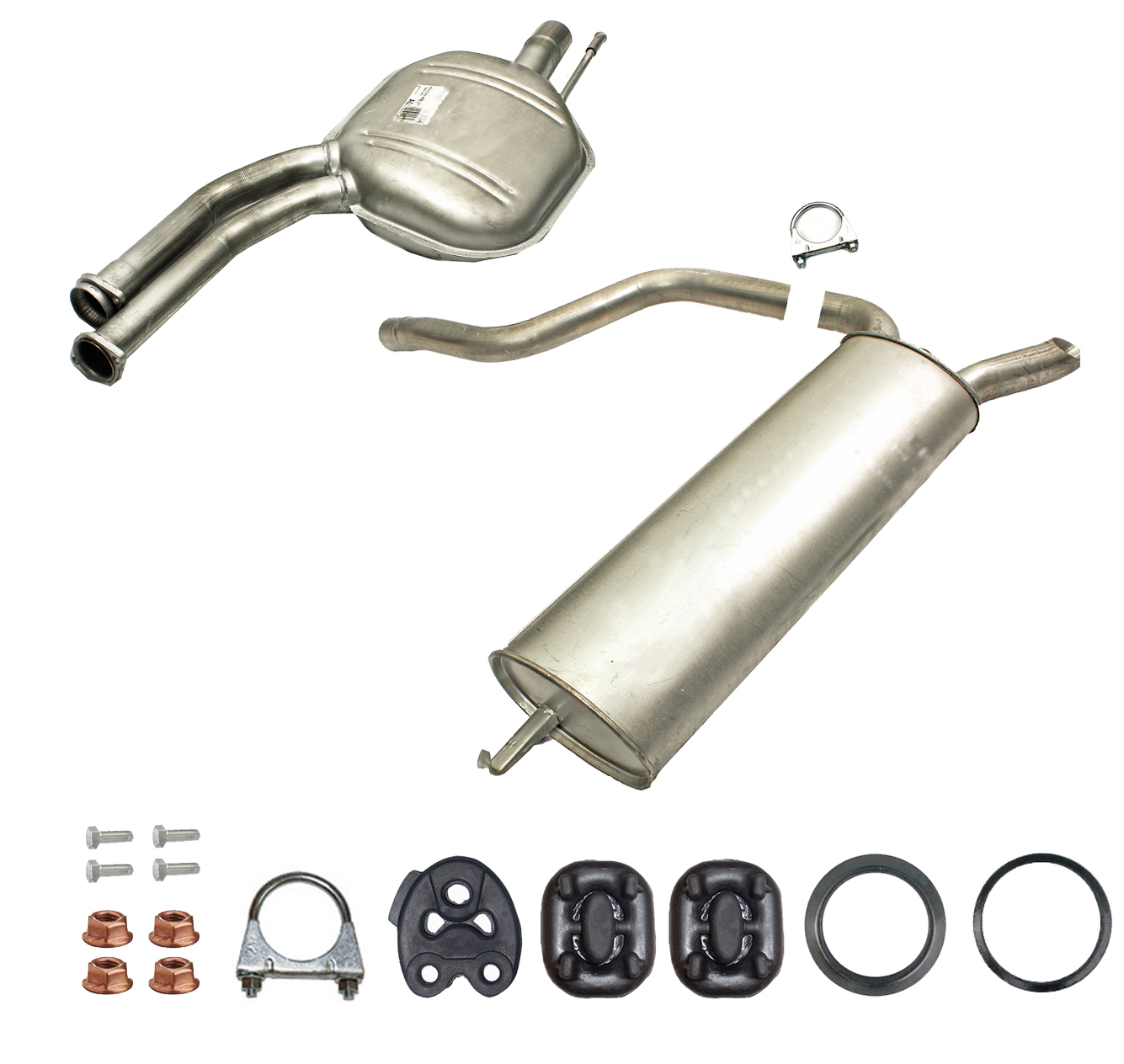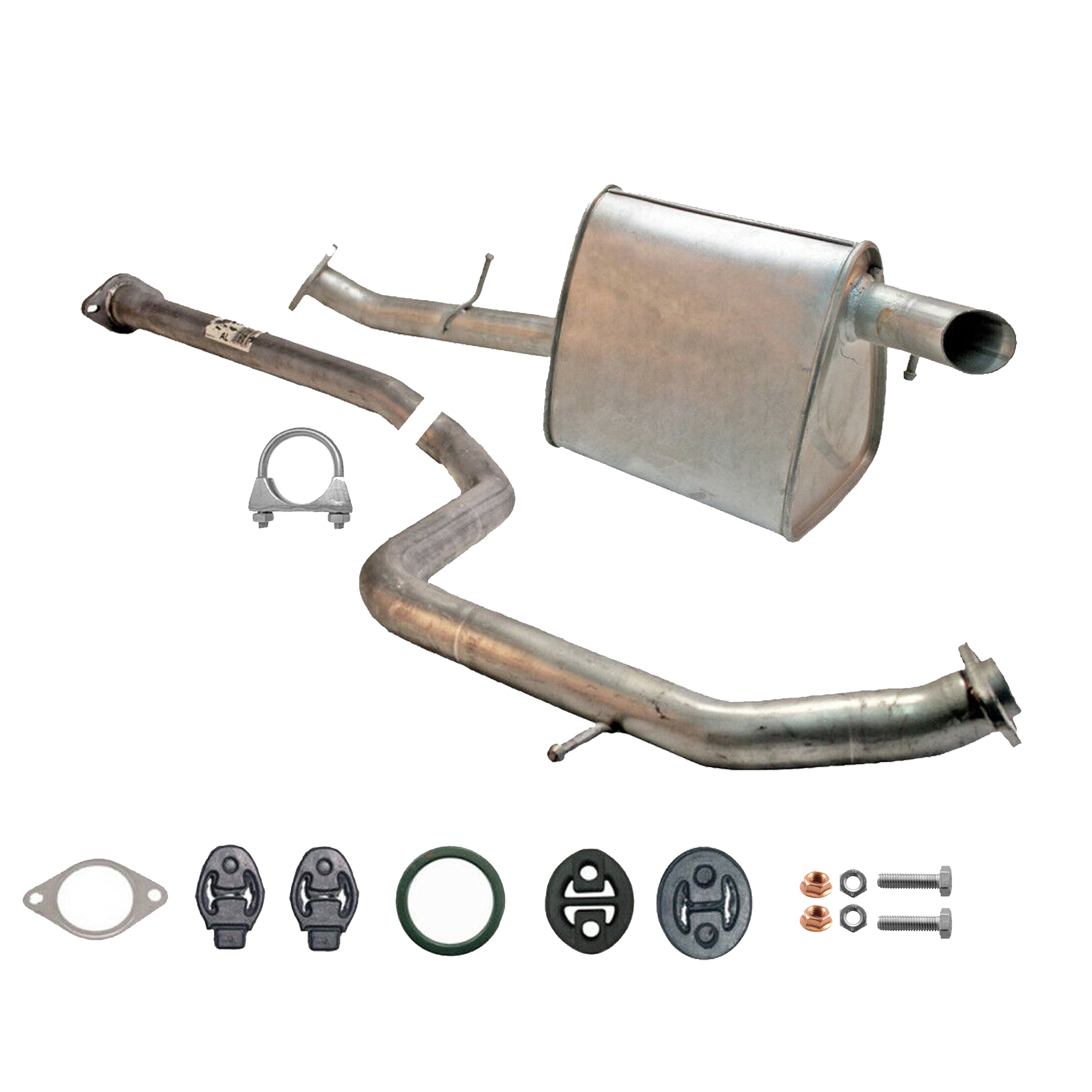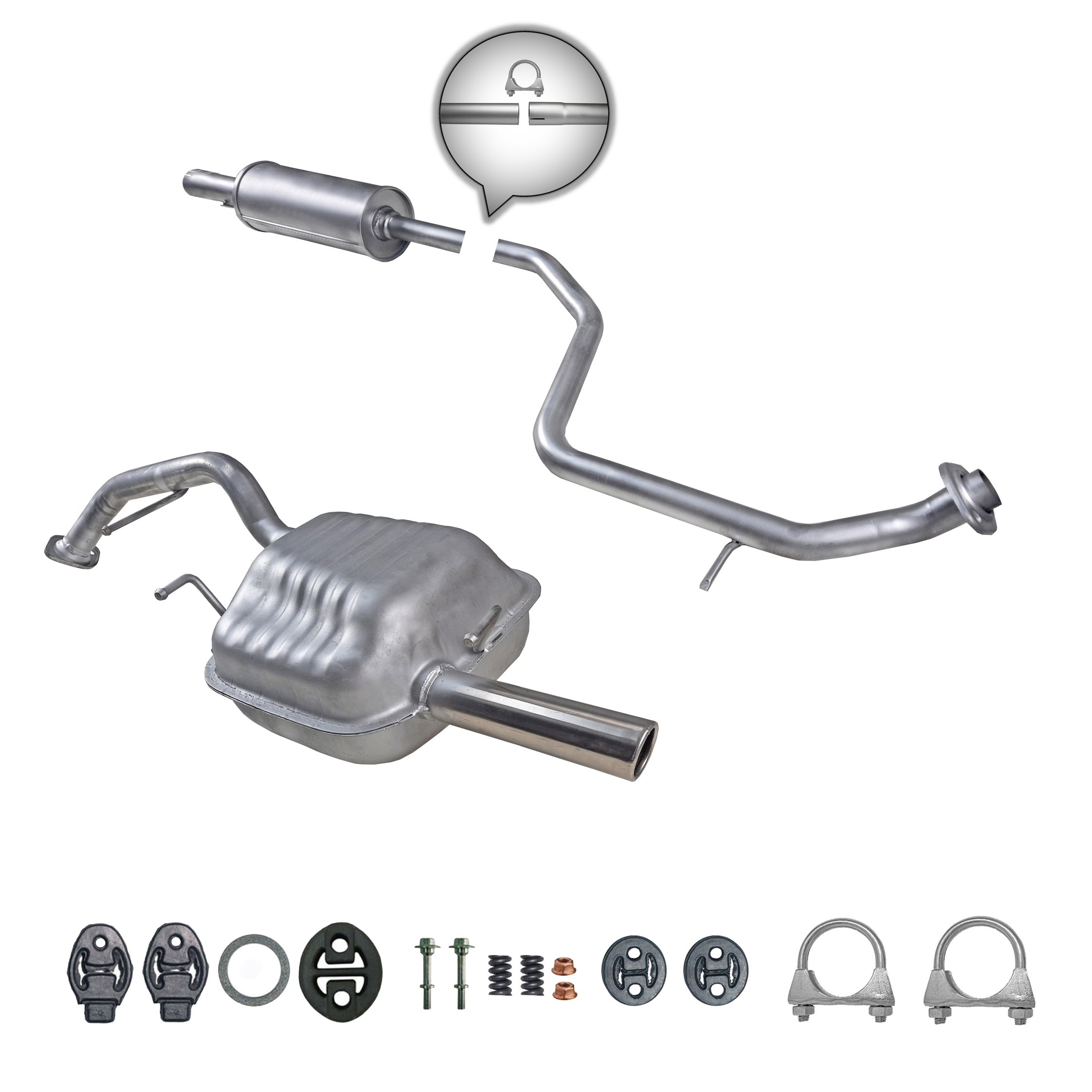 20100-JD700, 20100-JD71A, 20100-JD71B, 20100-JD71C, 20100-JD71B, 20100-JD71C, 145-285, 51.74.07, NS53042, 850-233, P41025, 51.74.04, 01.61176, NS53041, 10586, Auspuff, Auspuffanlage, Mittelschalldämpfer, MSD, Endschalldämpfer, ESD, Nachschalldämpfer, Schalldämpfer, Montagesatz, Montageteile, Abgasanlage, Anbaukit