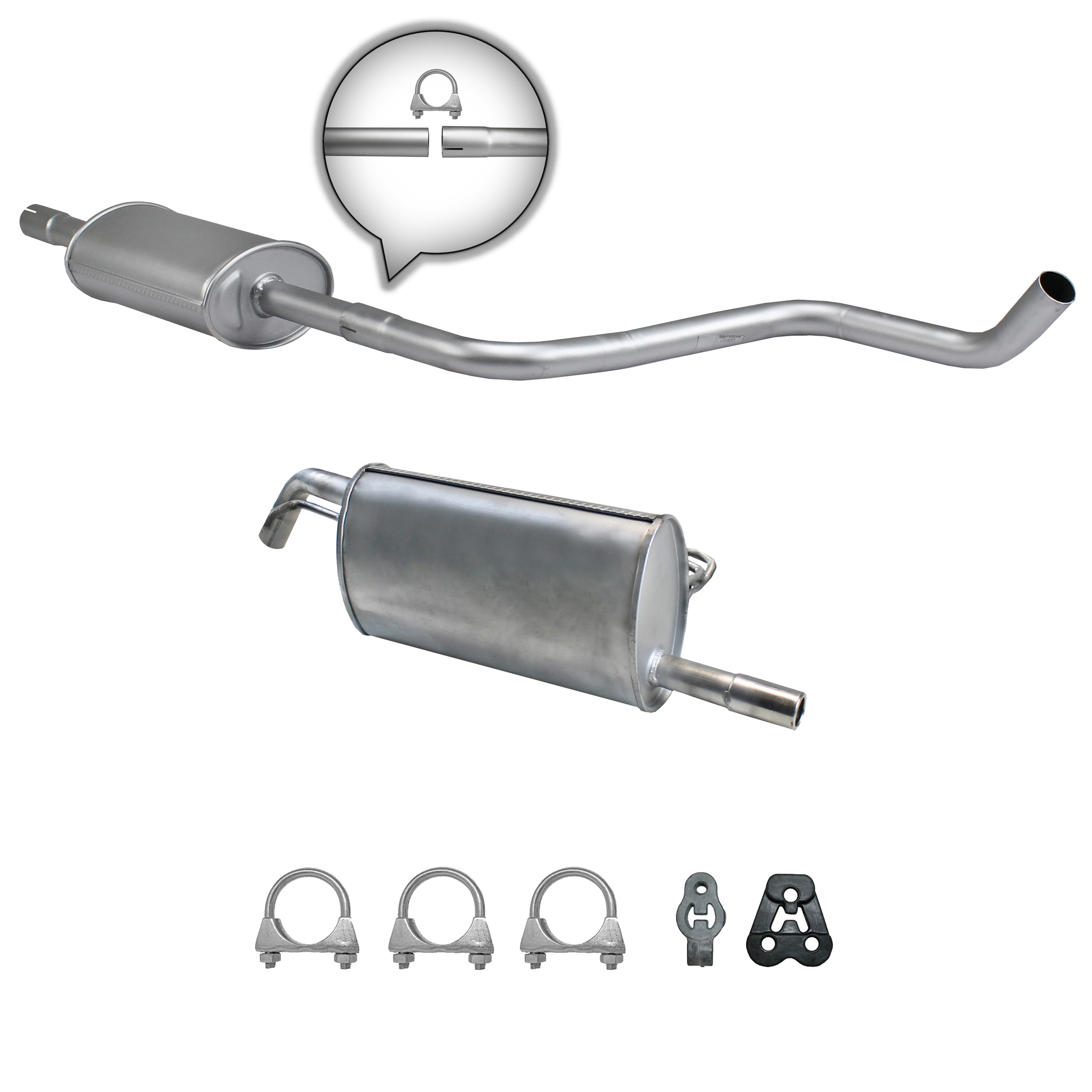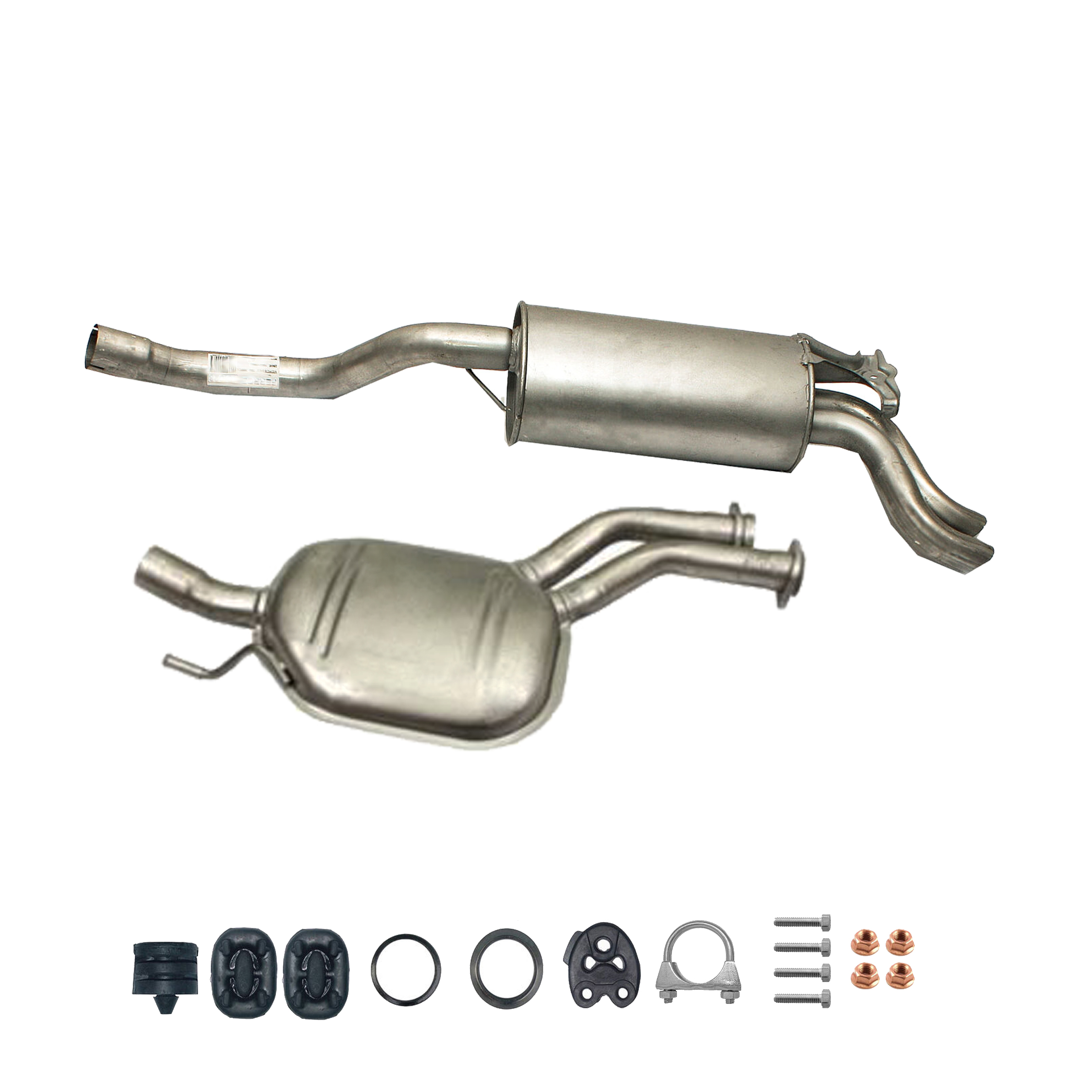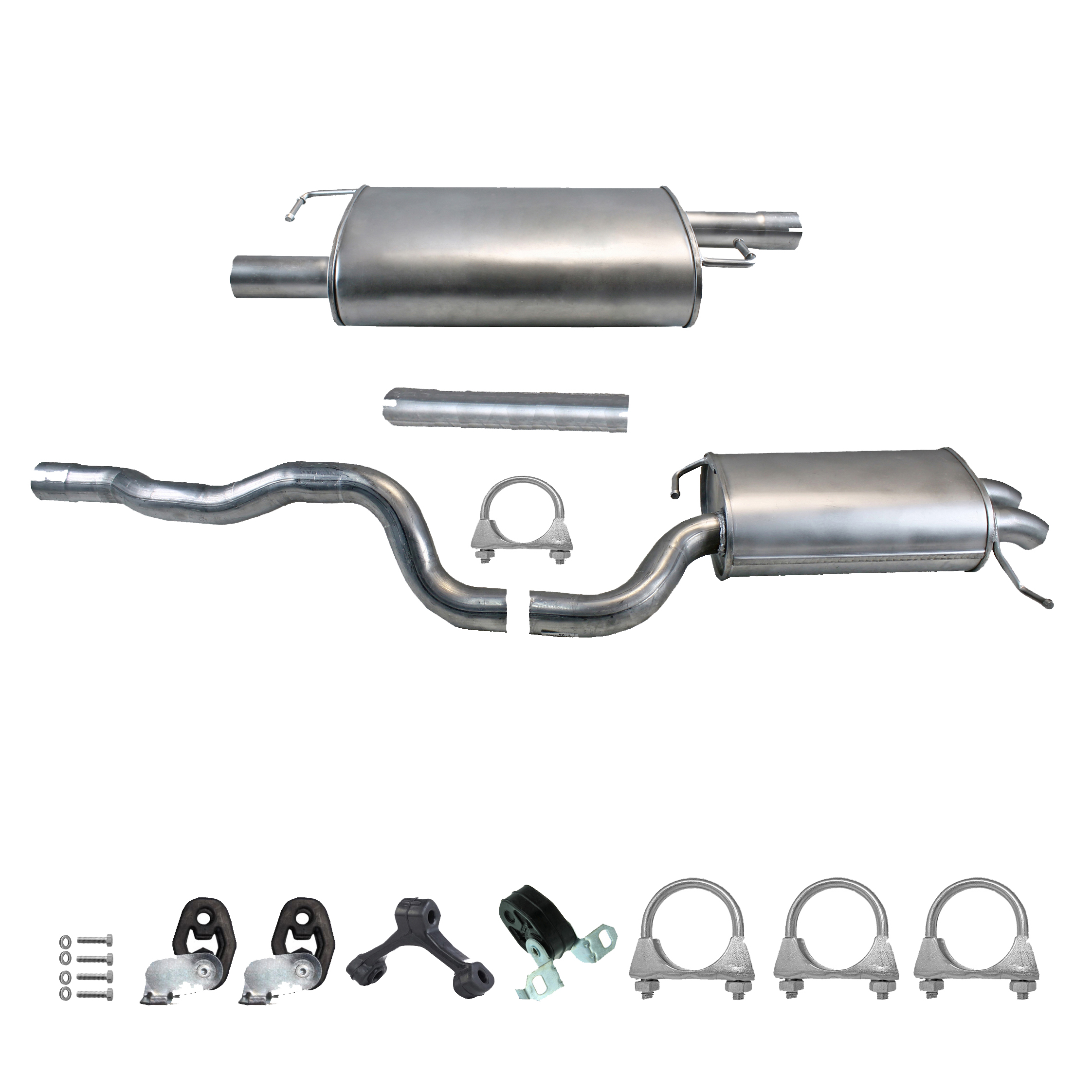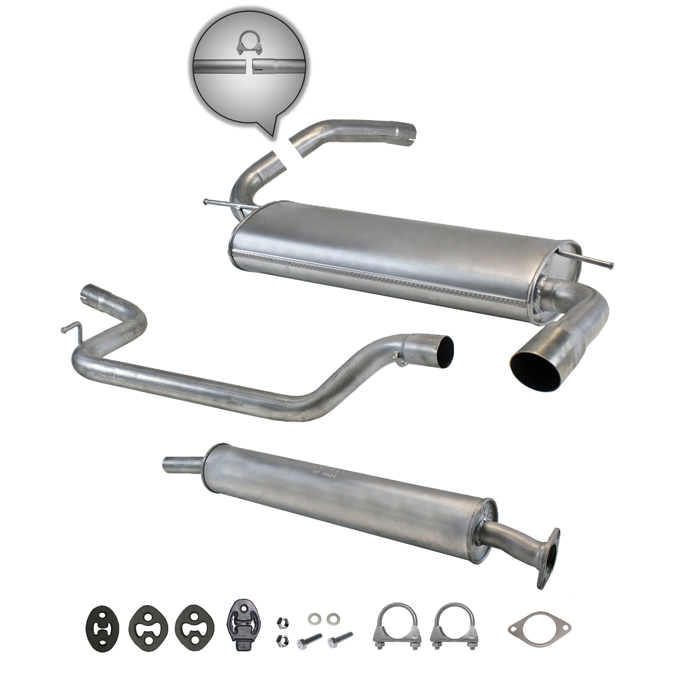 20100-JD700, 20100-JD71A, 20100-JD71B, 20100-JD71C, 20100-JD71B, 20100-JD71C, 145-285, 51.74.07, NS53042, 850-233, P41025, 51.74.04, 01.61176, NS53041, 10586, Auspuff, Auspuffanlage, Mittelschalldämpfer, MSD, Endschalldämpfer, ESD, Nachschalldämpfer, Schalldämpfer, Montagesatz, Montageteile, Abgasanlage, Anbaukit