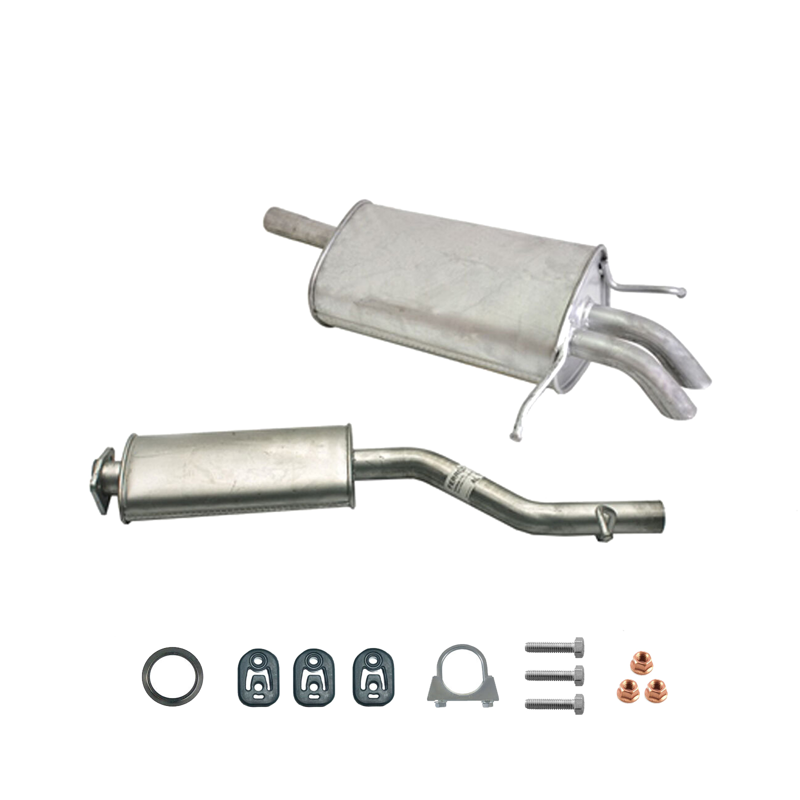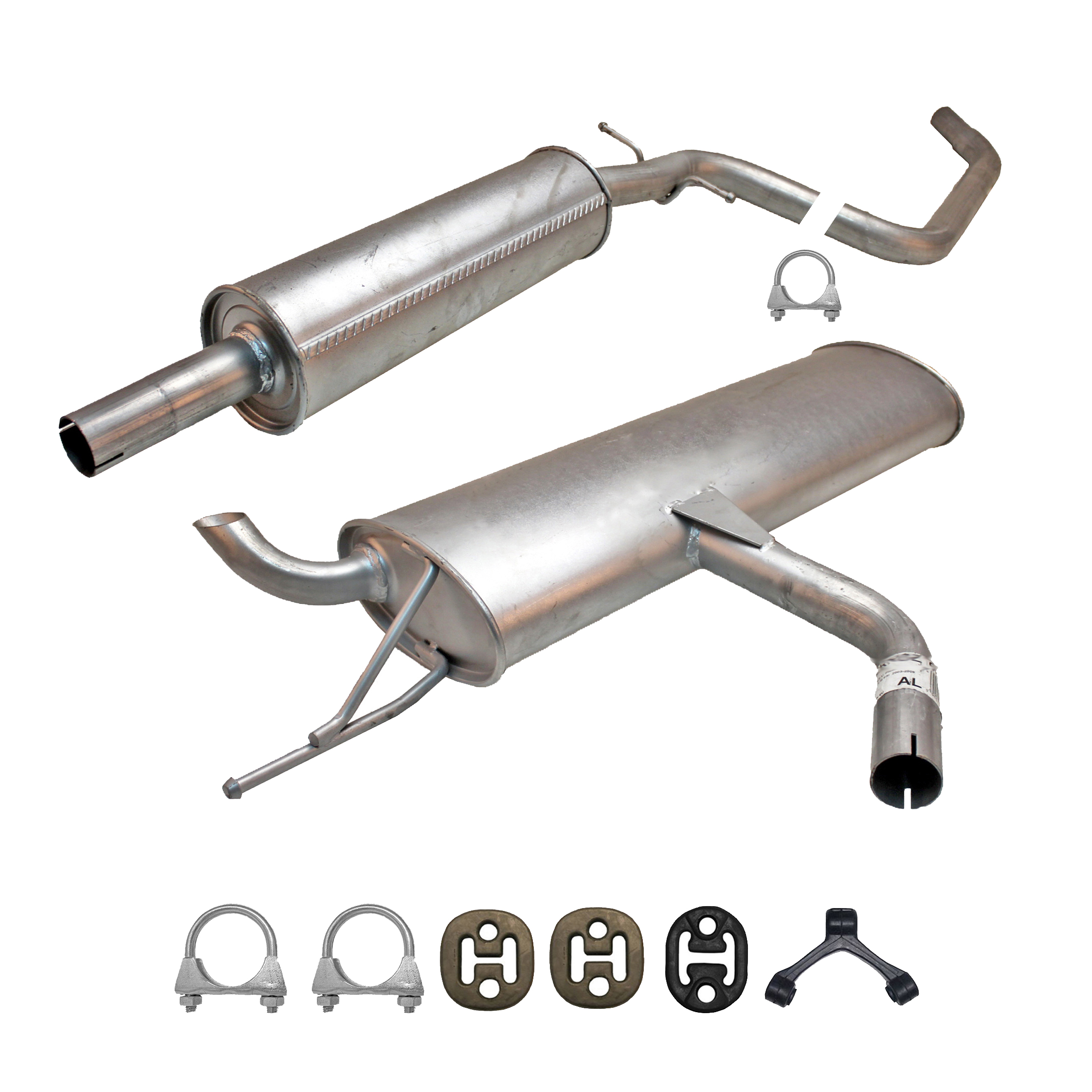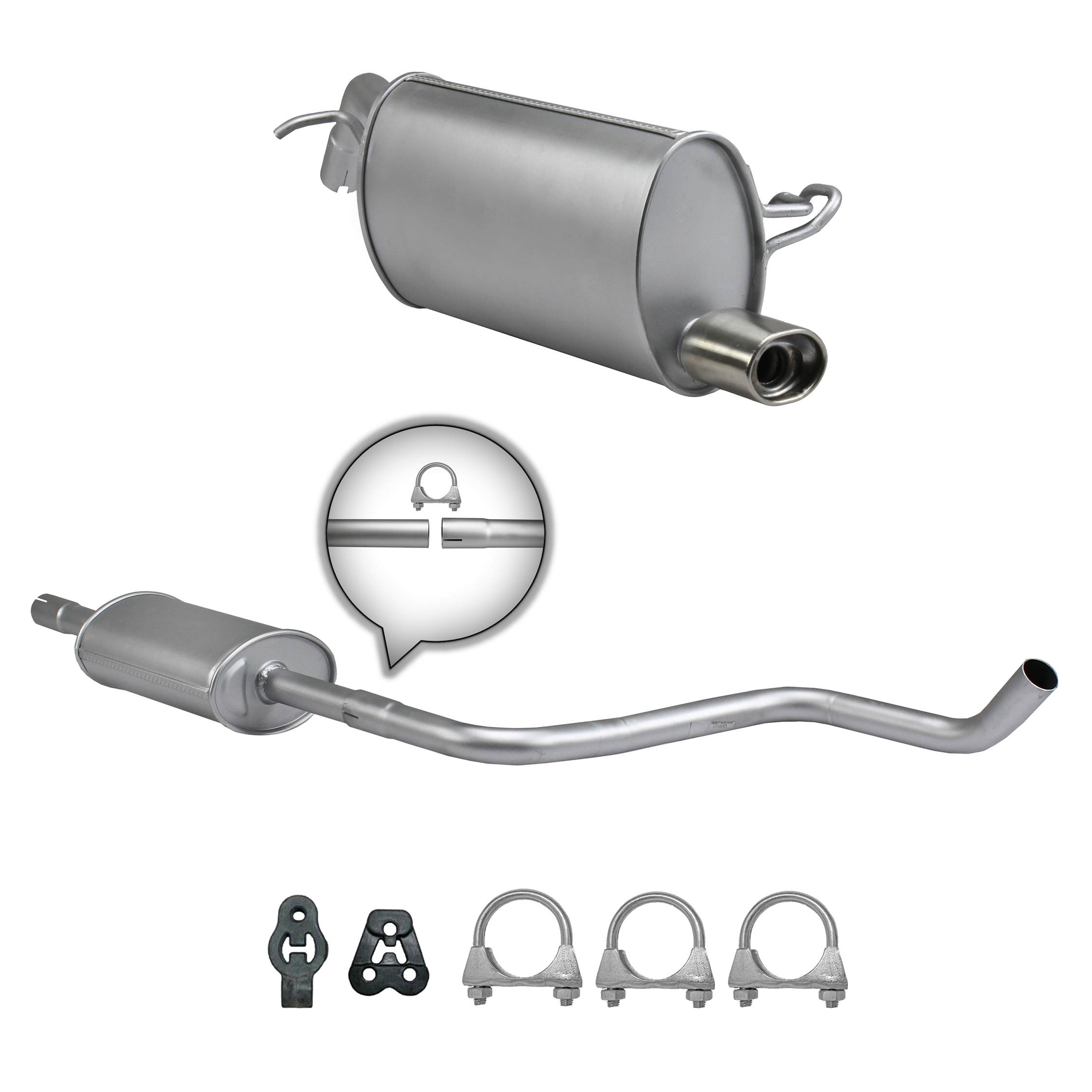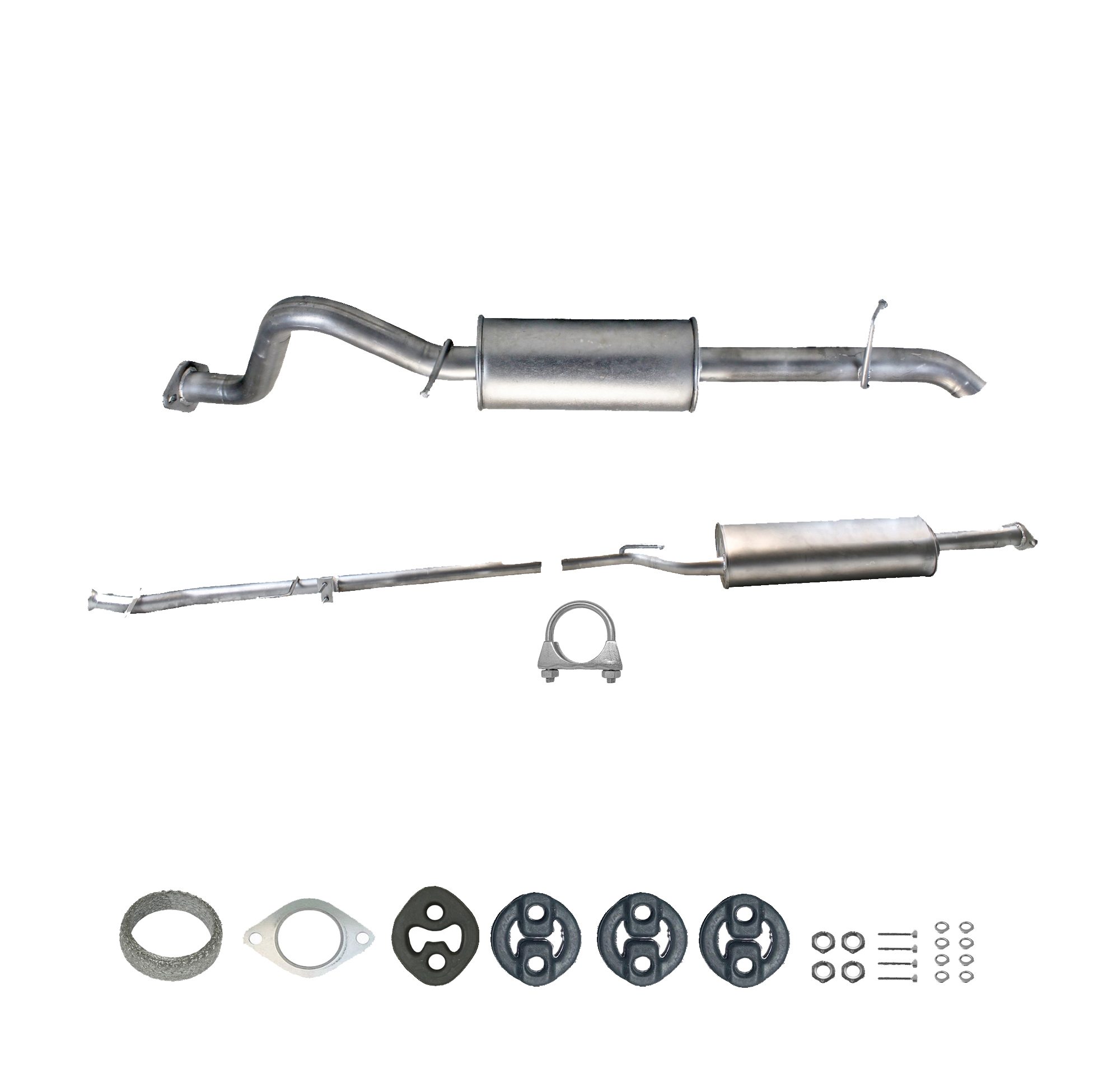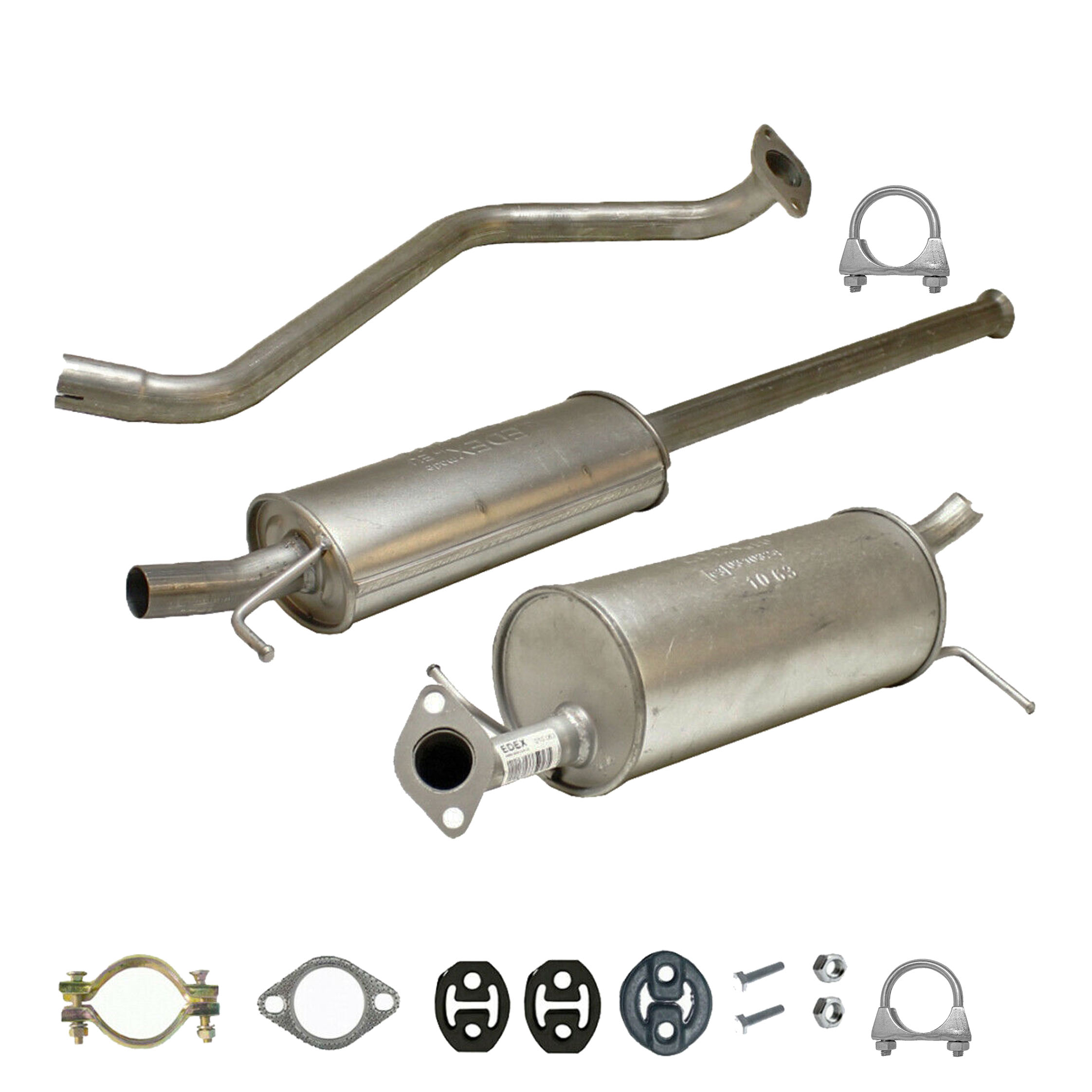 20100-JD700, 20100-JD71A, 20100-JD71B, 20100-JD71C, 20100-JD71B, 20100-JD71C, 145-285, 51.74.07, NS53042, 850-233, P41025, 51.74.04, 01.61176, NS53041, 10586, Auspuff, Auspuffanlage, Mittelschalldämpfer, MSD, Endschalldämpfer, ESD, Nachschalldämpfer, Schalldämpfer, Montagesatz, Montageteile, Abgasanlage, Anbaukit