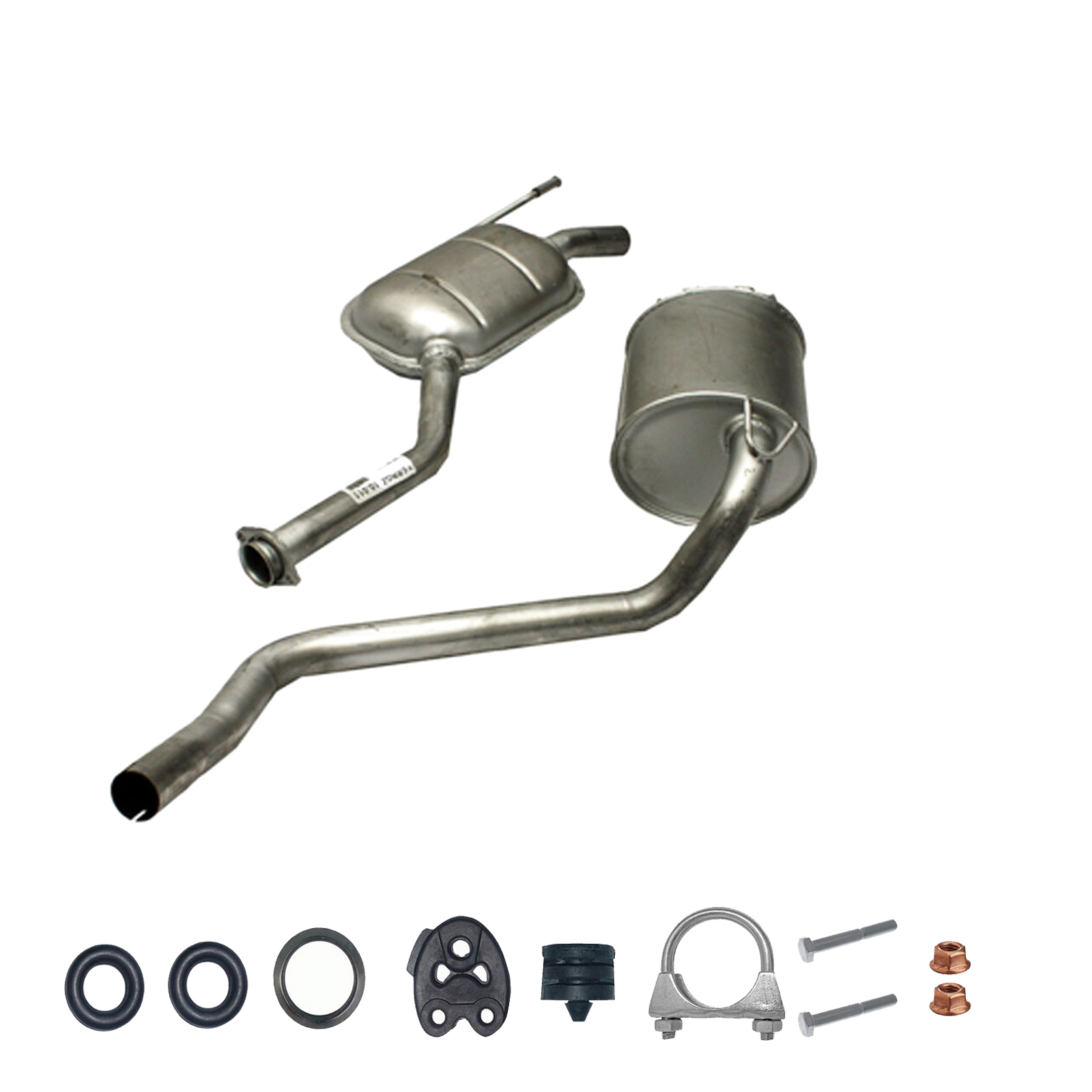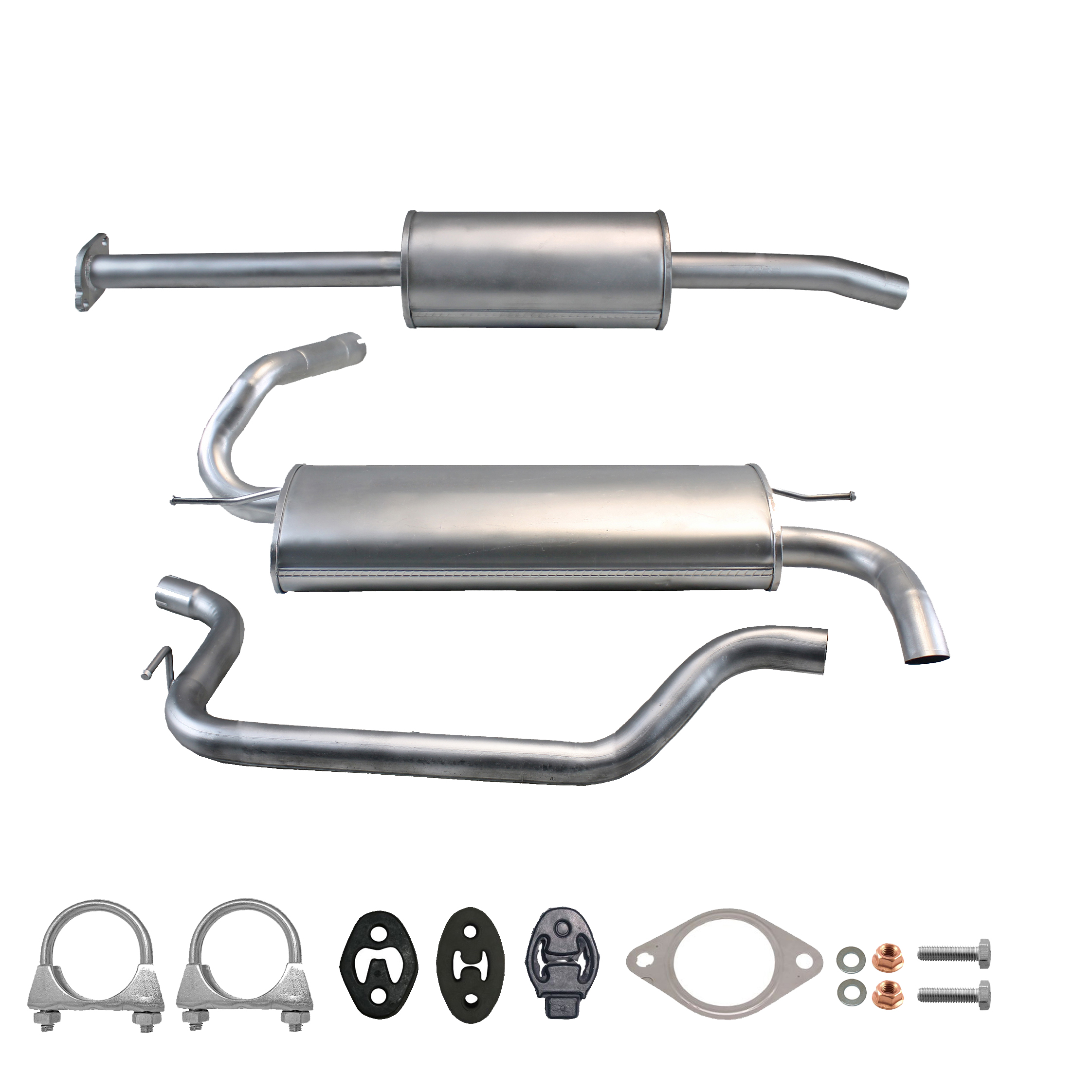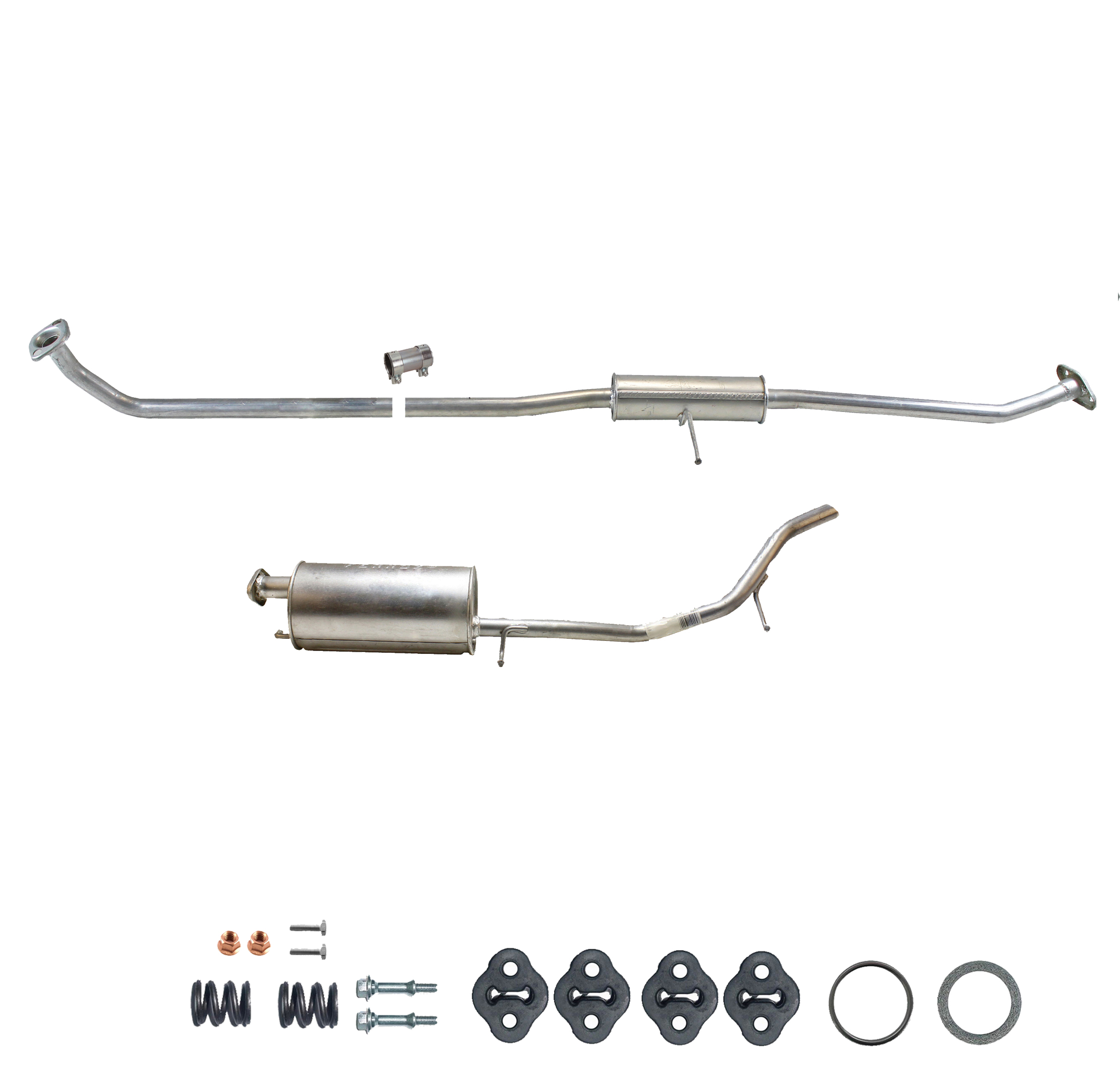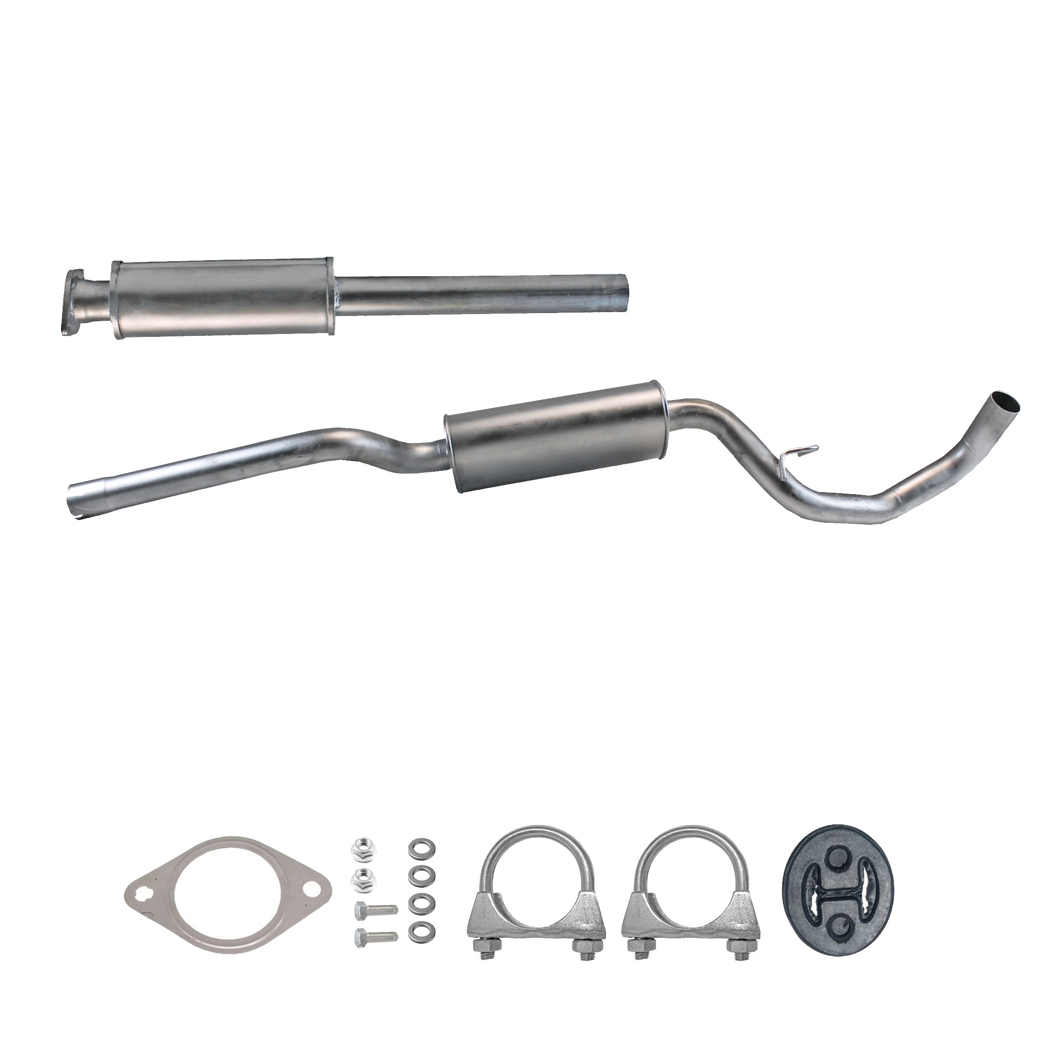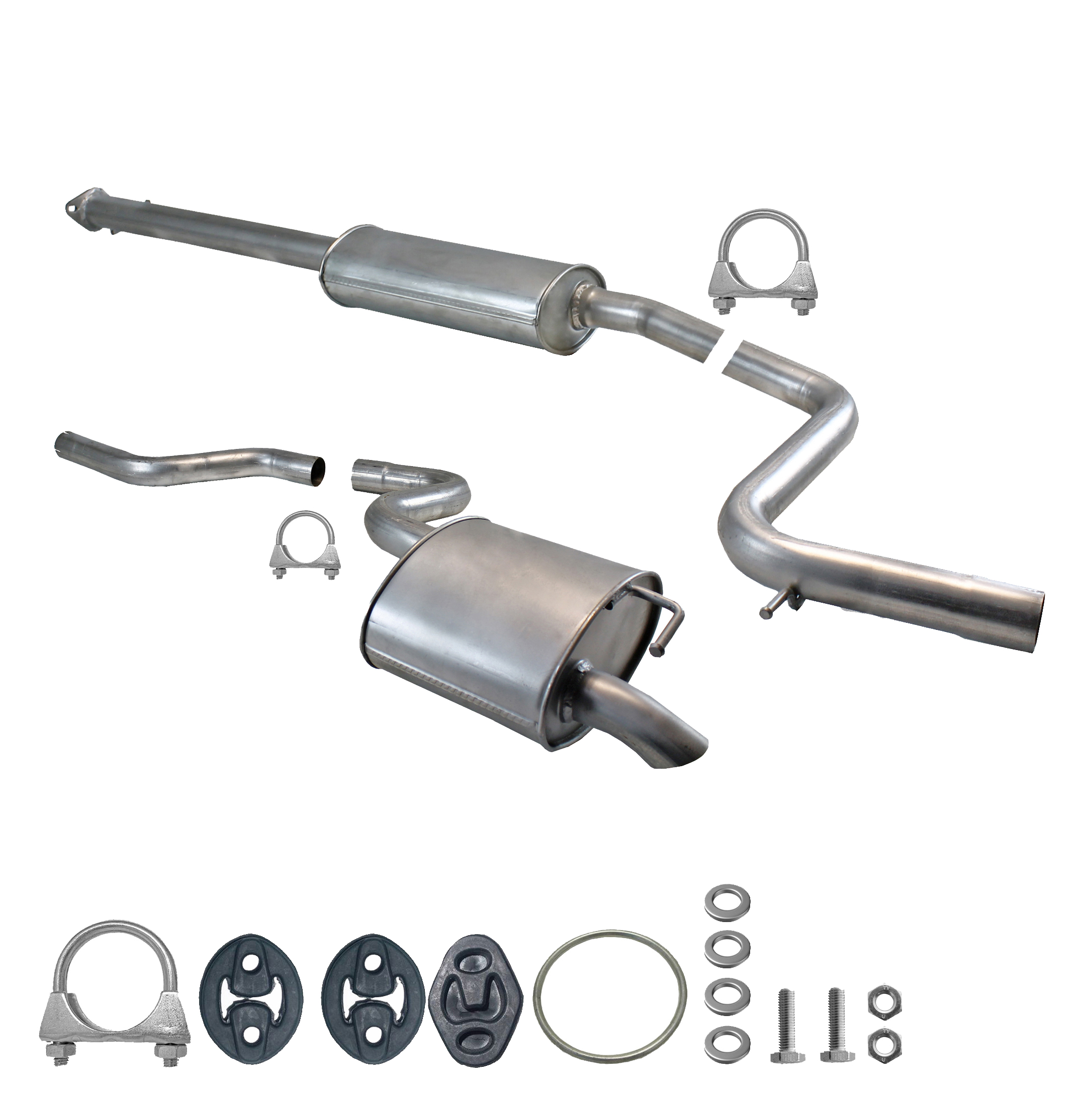 20100-JD700, 20100-JD71A, 20100-JD71B, 20100-JD71C, 20100-JD71B, 20100-JD71C, 145-285, 51.74.07, NS53042, 850-233, P41025, 51.74.04, 01.61176, NS53041, 10586, Auspuff, Auspuffanlage, Mittelschalldämpfer, MSD, Endschalldämpfer, ESD, Nachschalldämpfer, Schalldämpfer, Montagesatz, Montageteile, Abgasanlage, Anbaukit