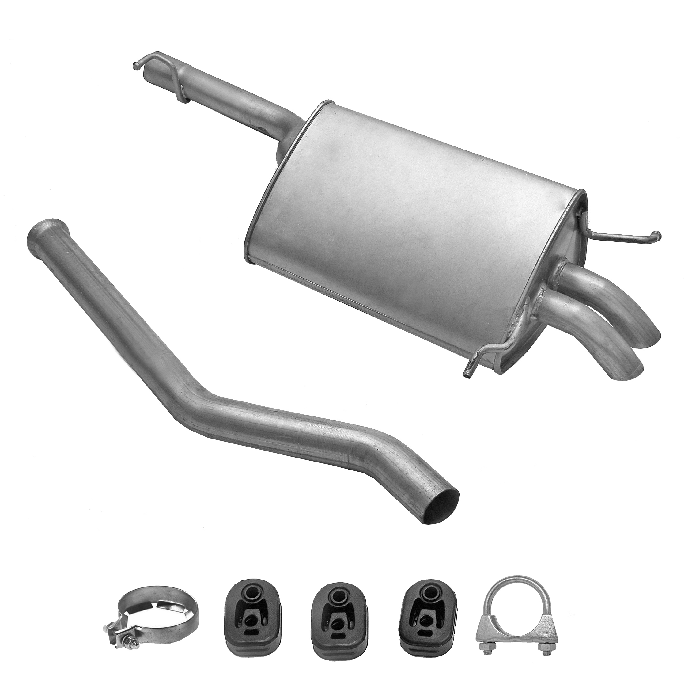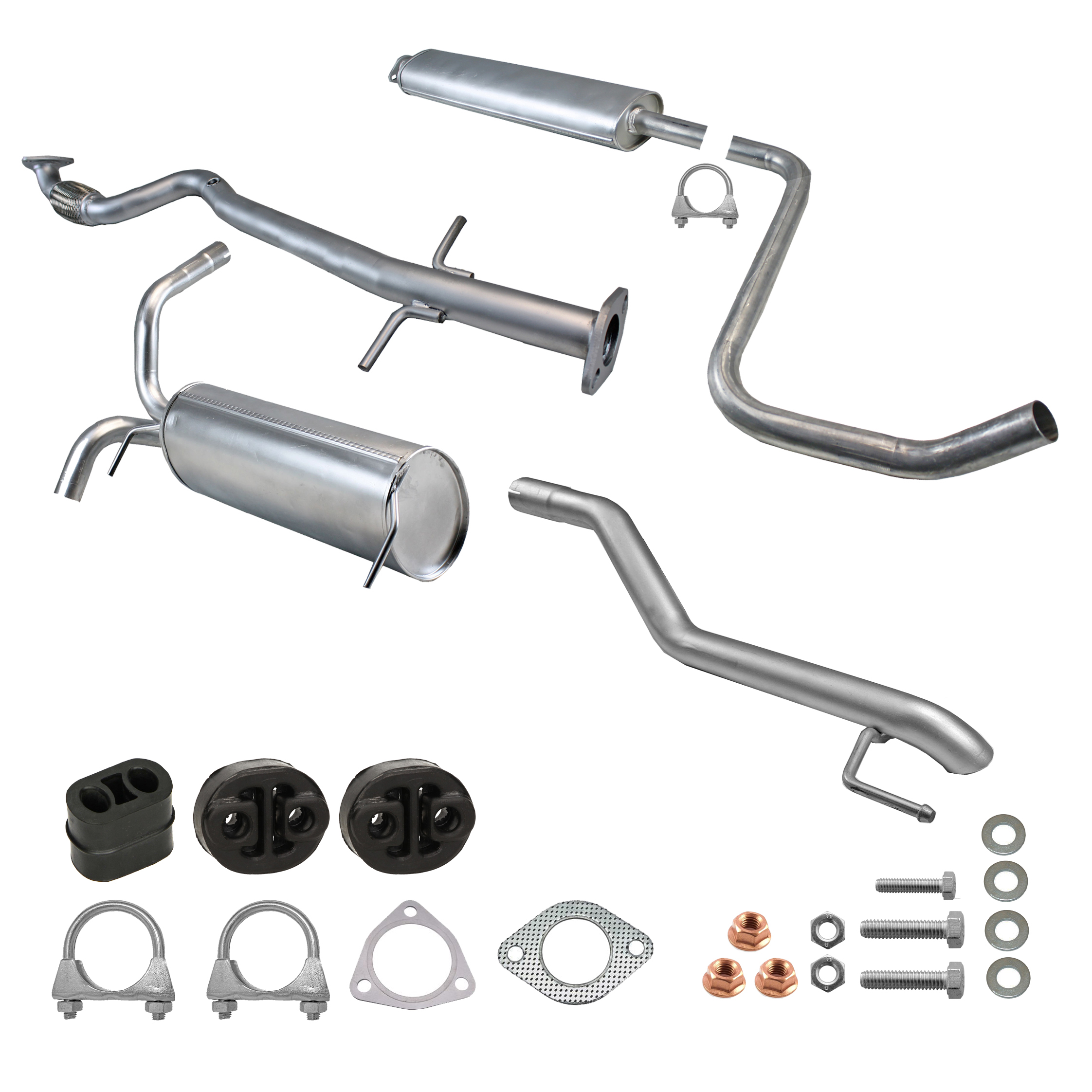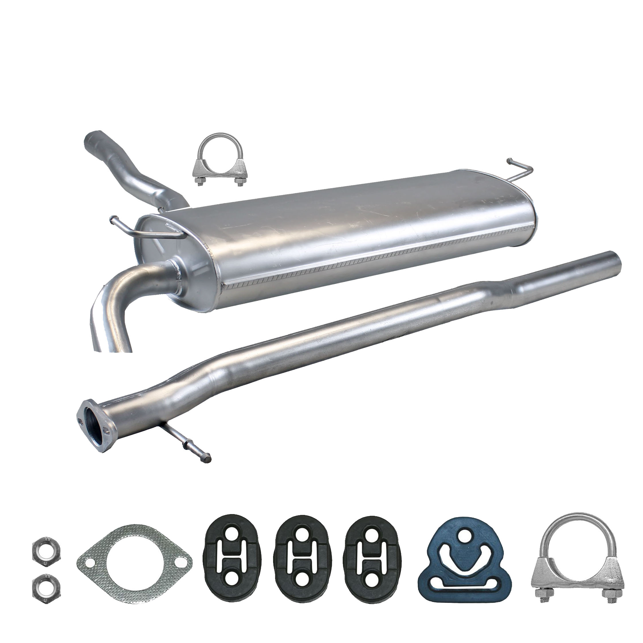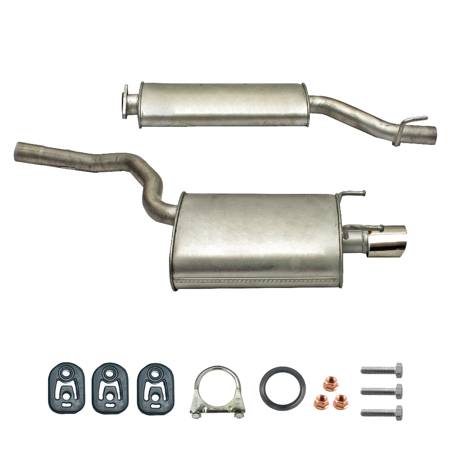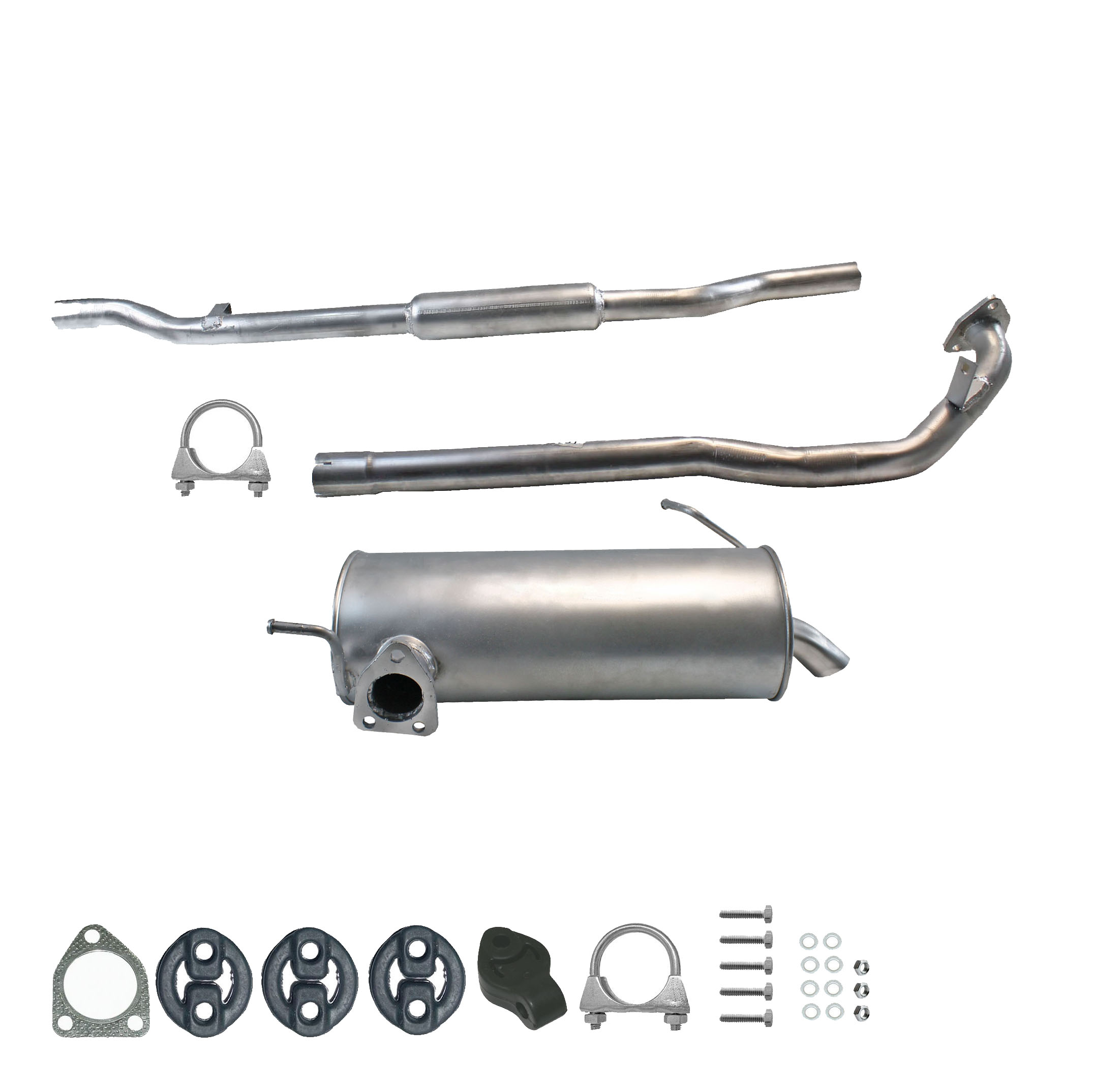 20100-JD700, 20100-JD71A, 20100-JD71B, 20100-JD71C, 20100-JD71B, 20100-JD71C, 145-285, 51.74.07, NS53042, 850-233, P41025, 51.74.04, 01.61176, NS53041, 10586, Auspuff, Auspuffanlage, Mittelschalldämpfer, MSD, Endschalldämpfer, ESD, Nachschalldämpfer, Schalldämpfer, Montagesatz, Montageteile, Abgasanlage, Anbaukit
