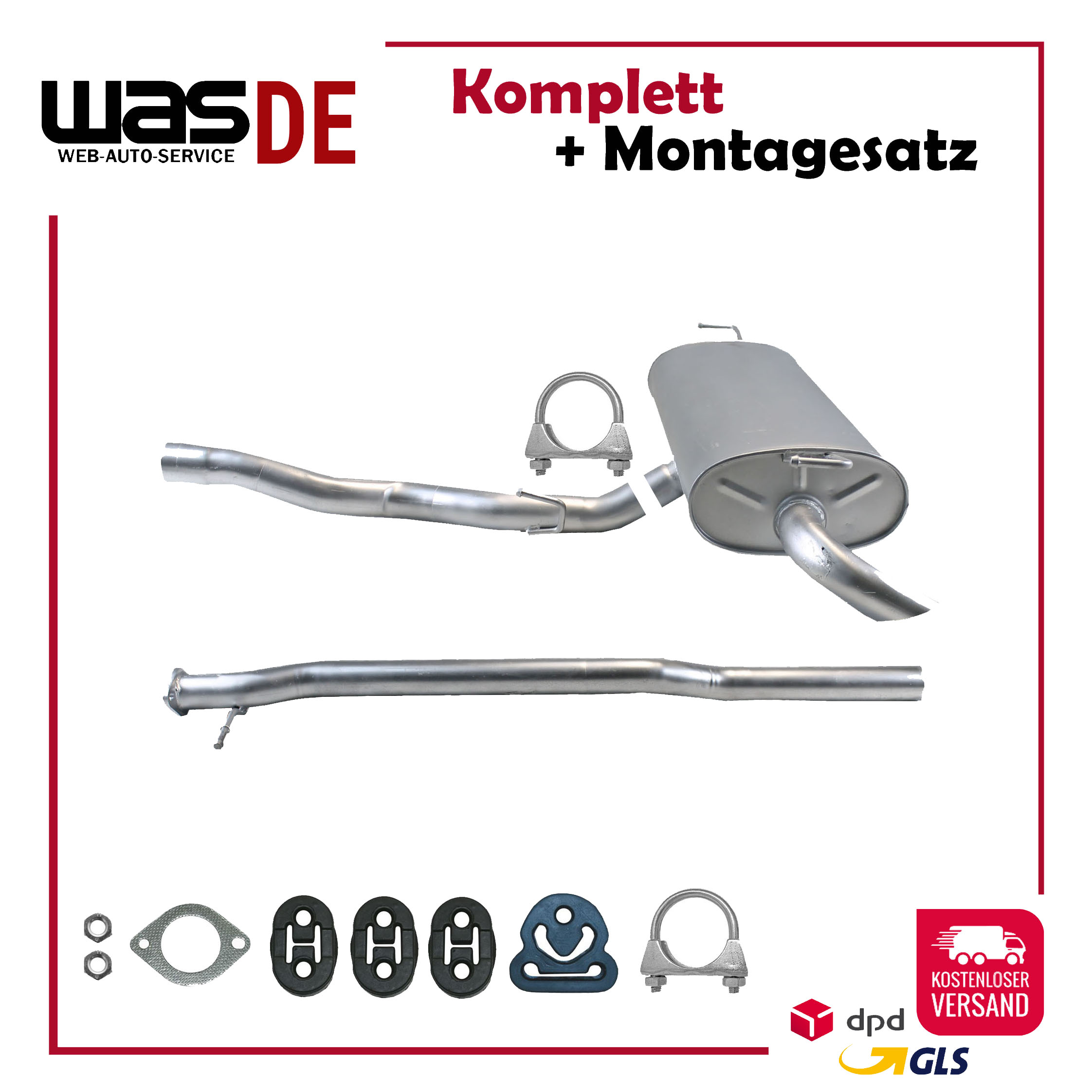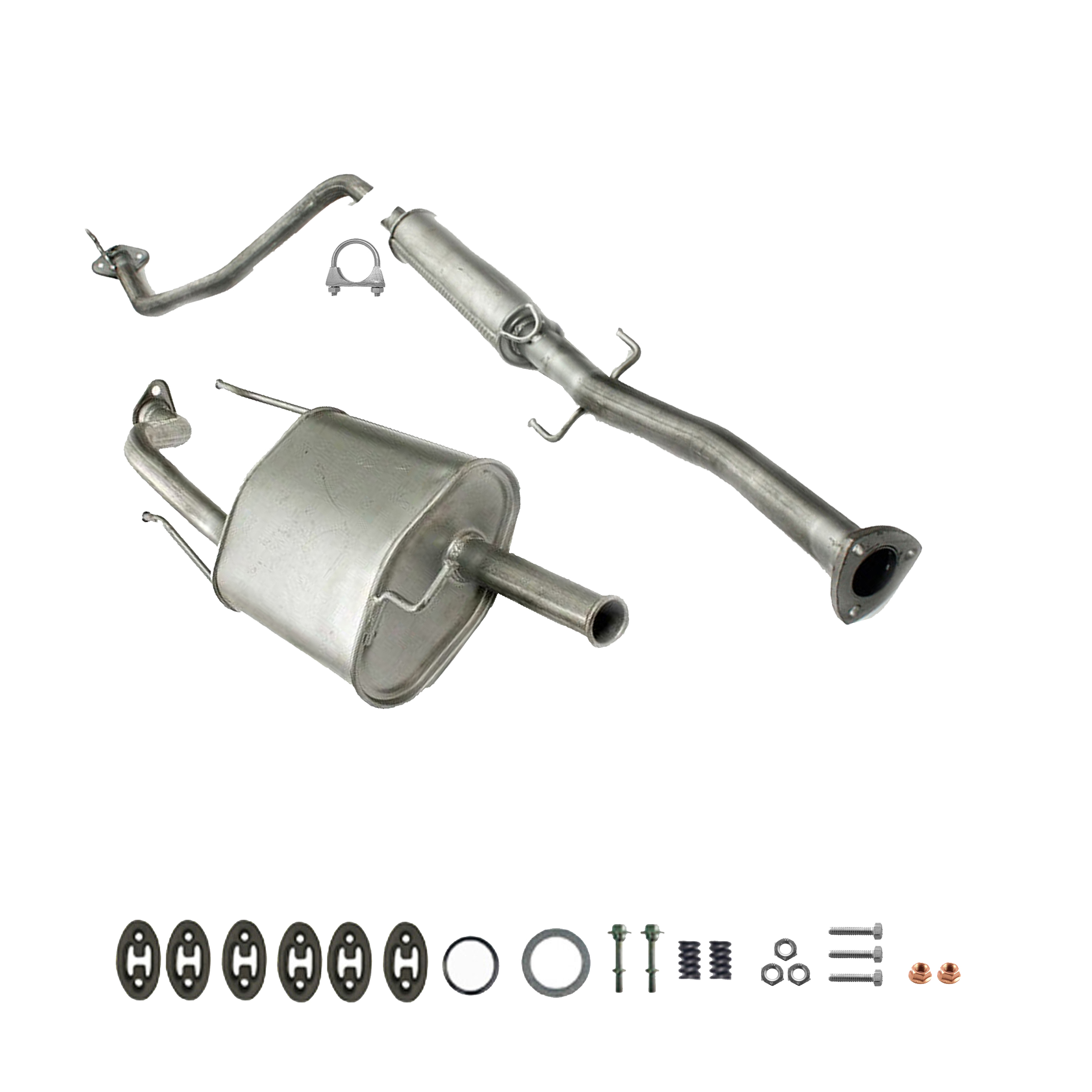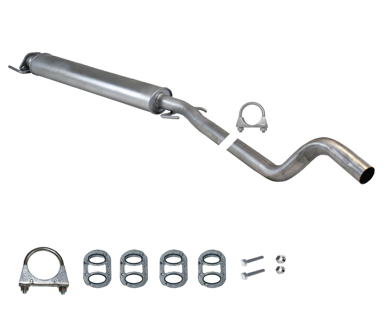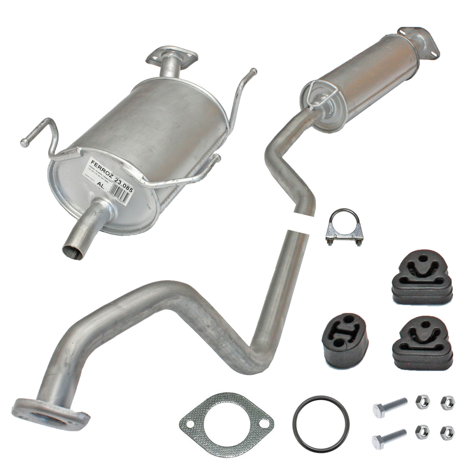 20100-JD700, 20100-JD71A, 20100-JD71B, 20100-JD71C, 20100-JD71B, 20100-JD71C, 145-285, 51.74.07, NS53042, 850-233, P41025, 51.74.04, 01.61176, NS53041, 10586, Auspuff, Auspuffanlage, Mittelschalldämpfer, MSD, Endschalldämpfer, ESD, Nachschalldämpfer, Schalldämpfer, Montagesatz, Montageteile, Abgasanlage, Anbaukit