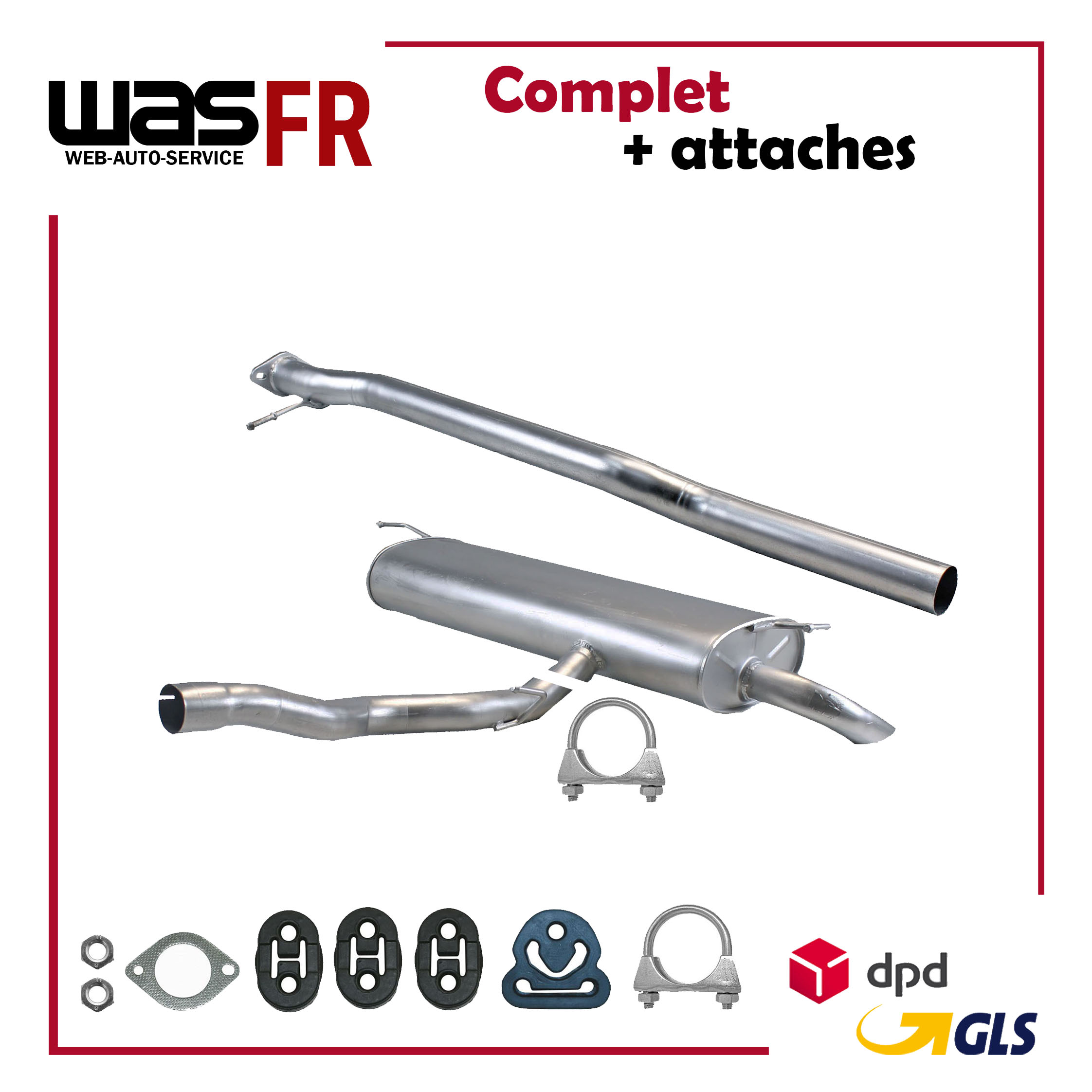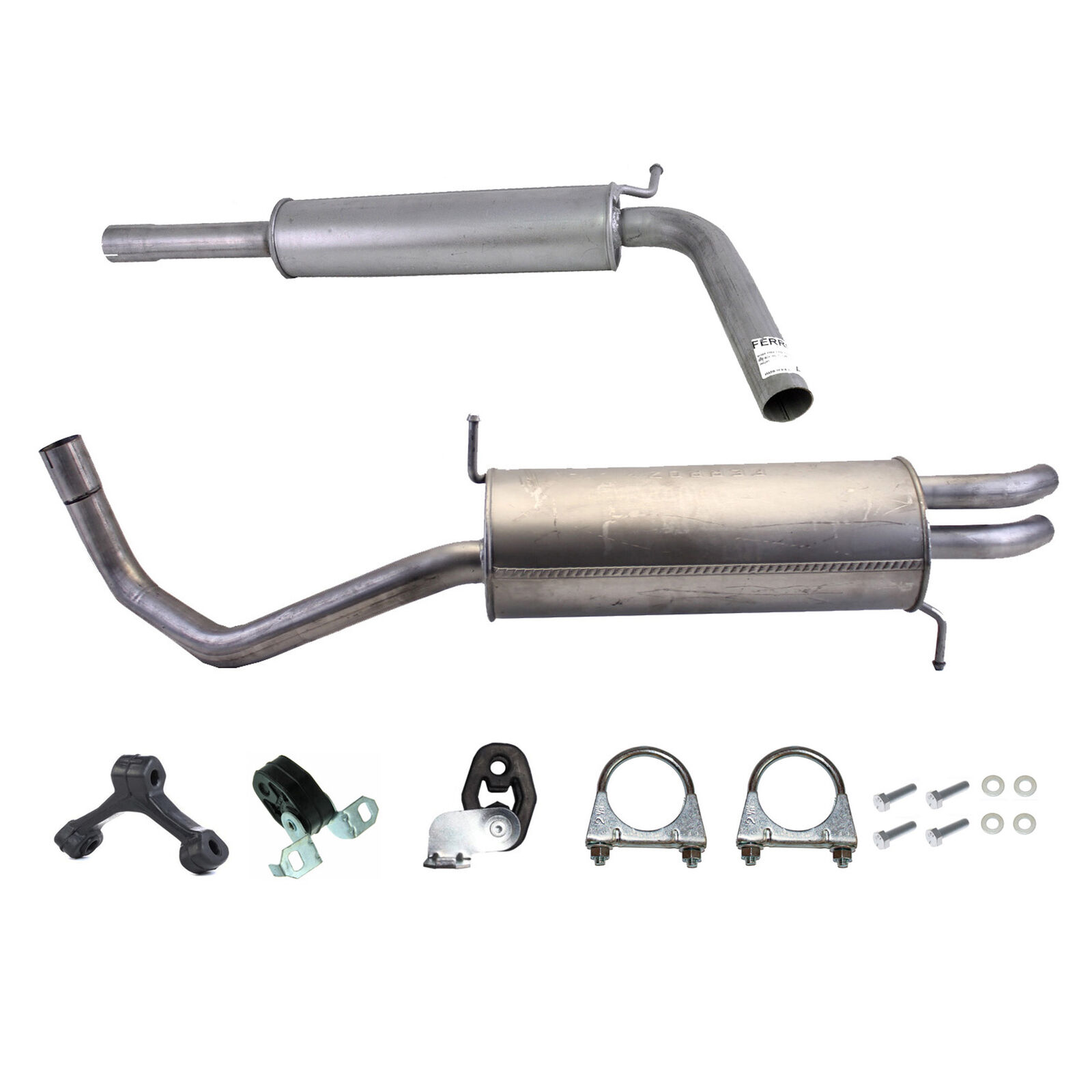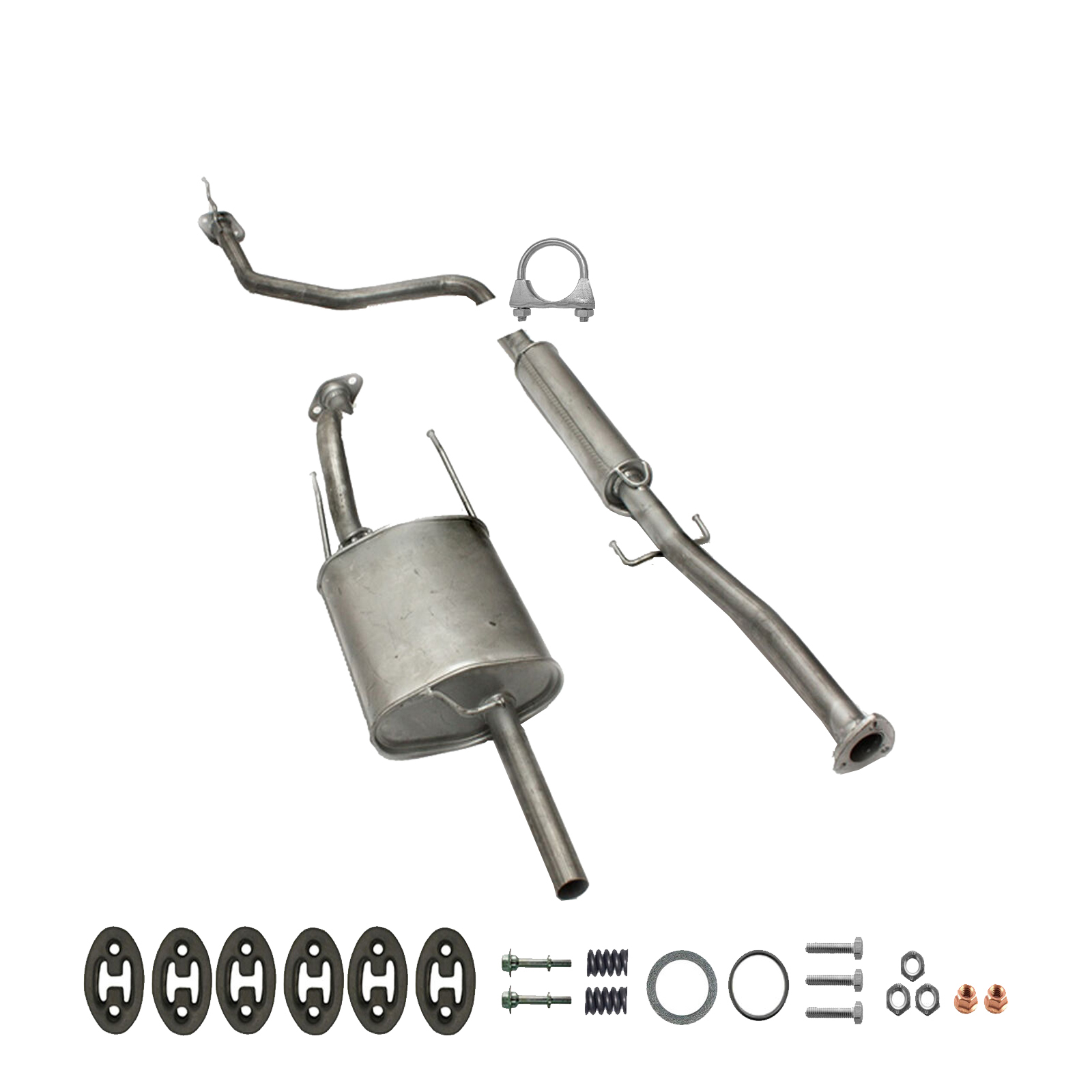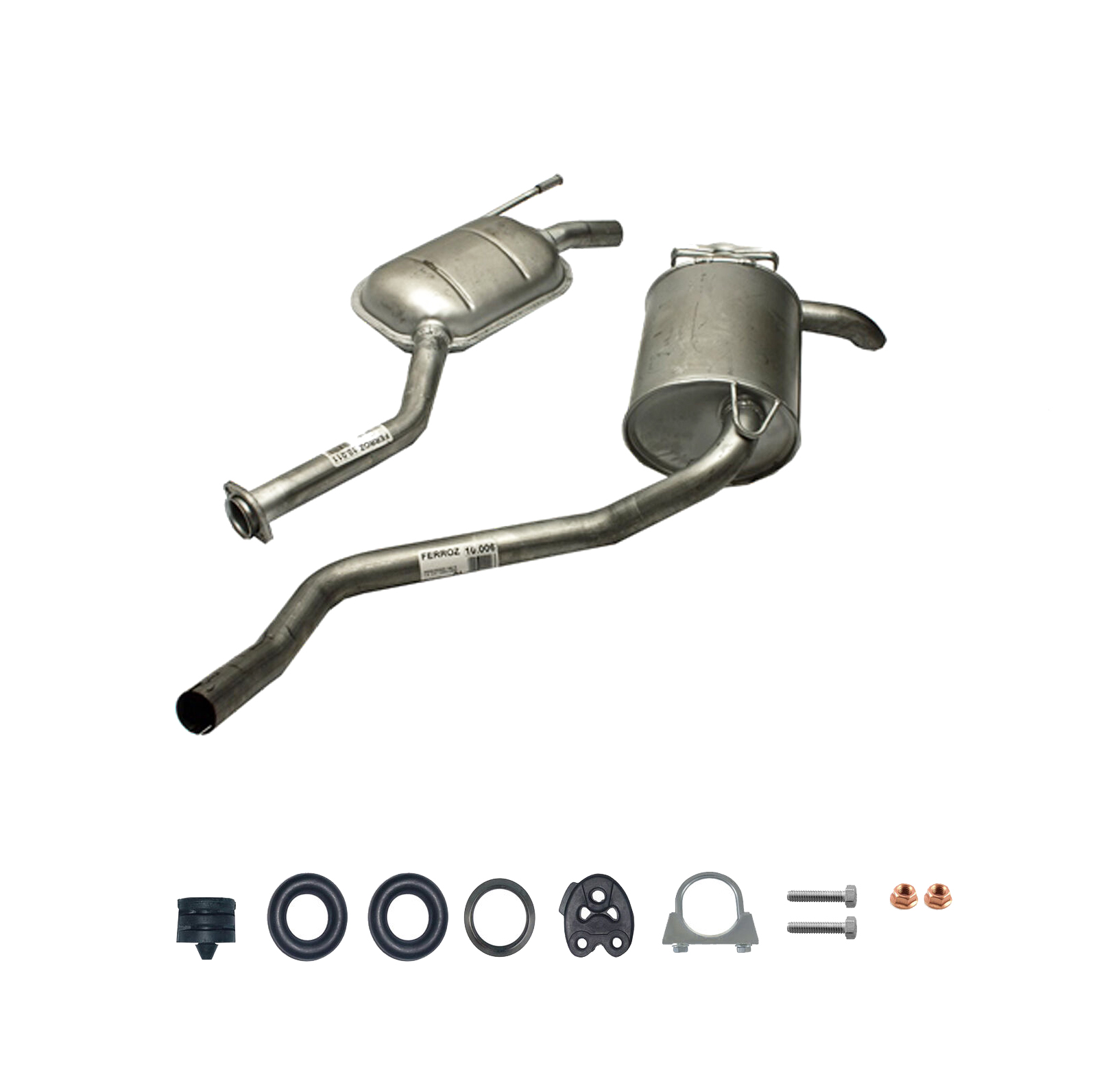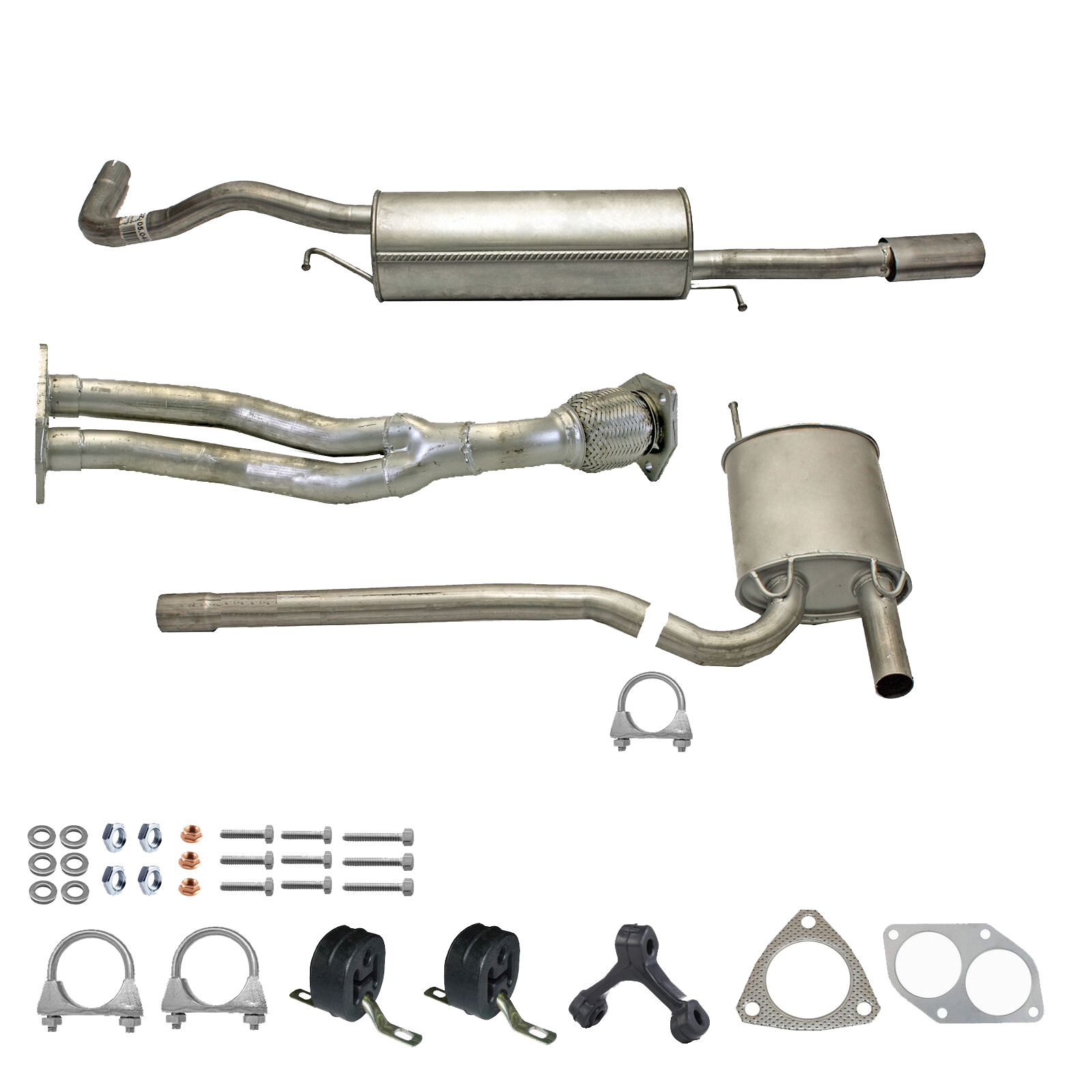 20100-JD700, 20100-JD71A, 20100-JD71B, 20100-JD71C, 20100-JD71B, 20100-JD71C, 145-285, 51.74.07, NS53042, 850-233, P41025, 51.74.04, 01.61176, NS53041, 10586, Auspuff, Auspuffanlage, Mittelschalldämpfer, MSD, Endschalldämpfer, ESD, Nachschalldämpfer, Schalldämpfer, Montagesatz, Montageteile, Abgasanlage, Anbaukit