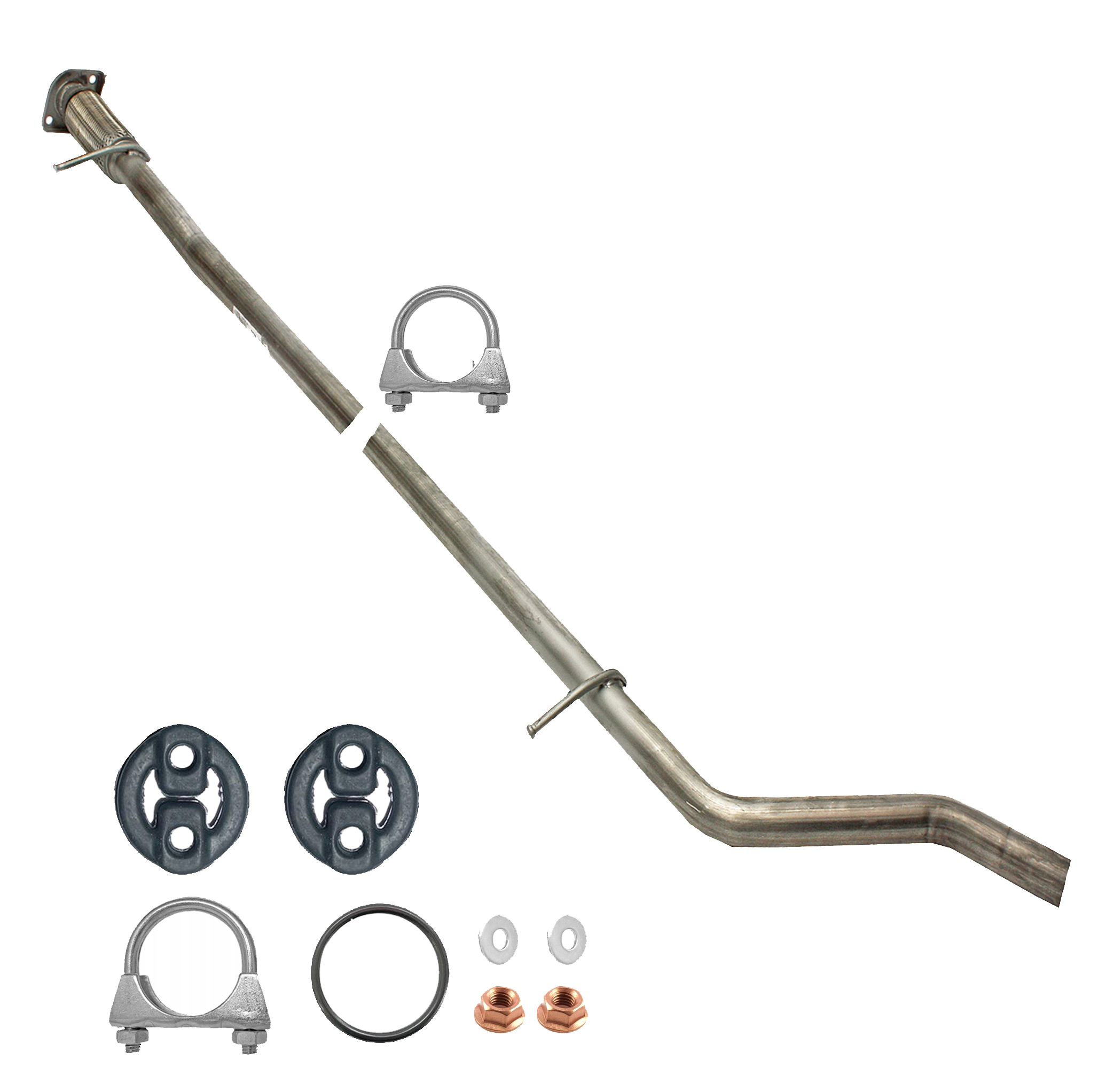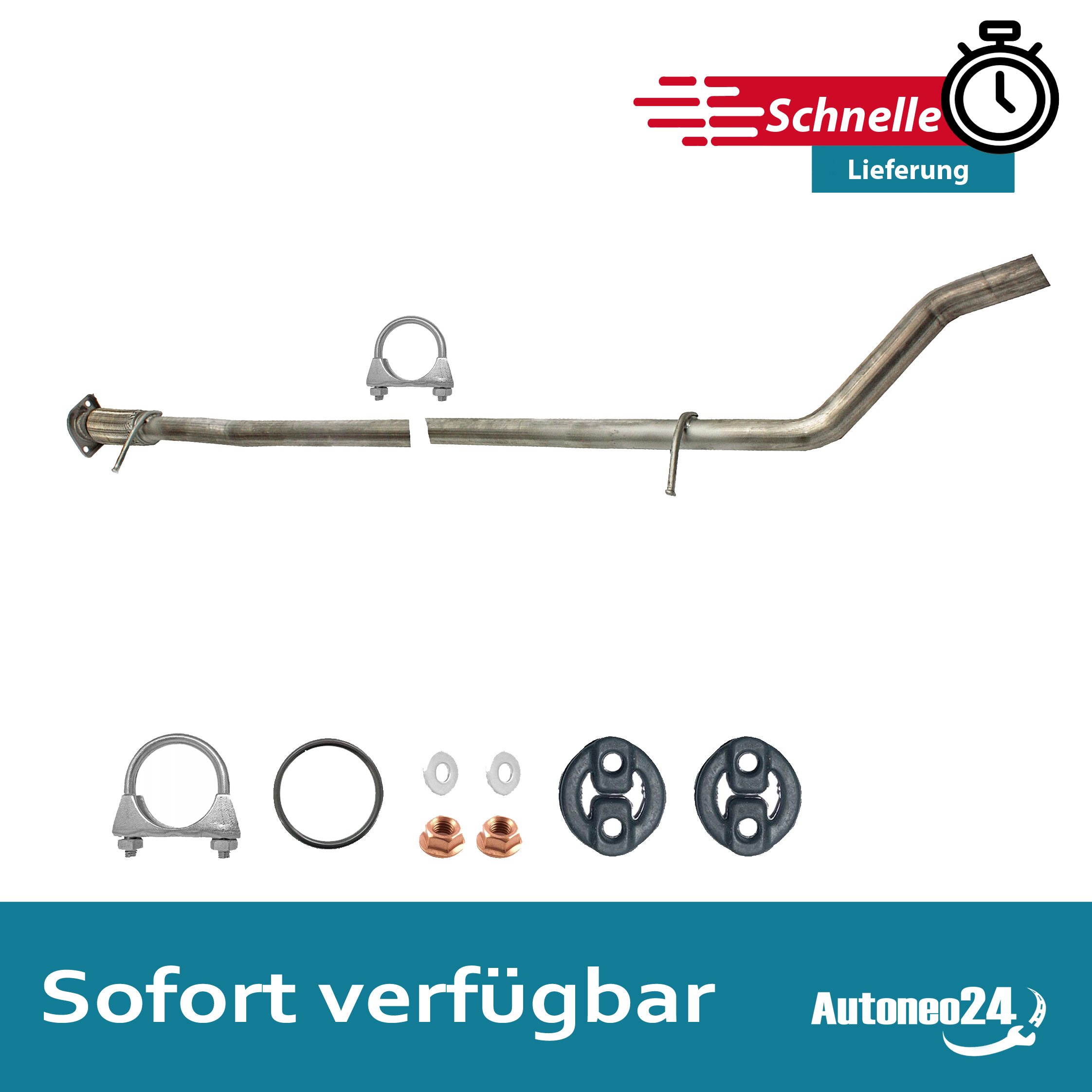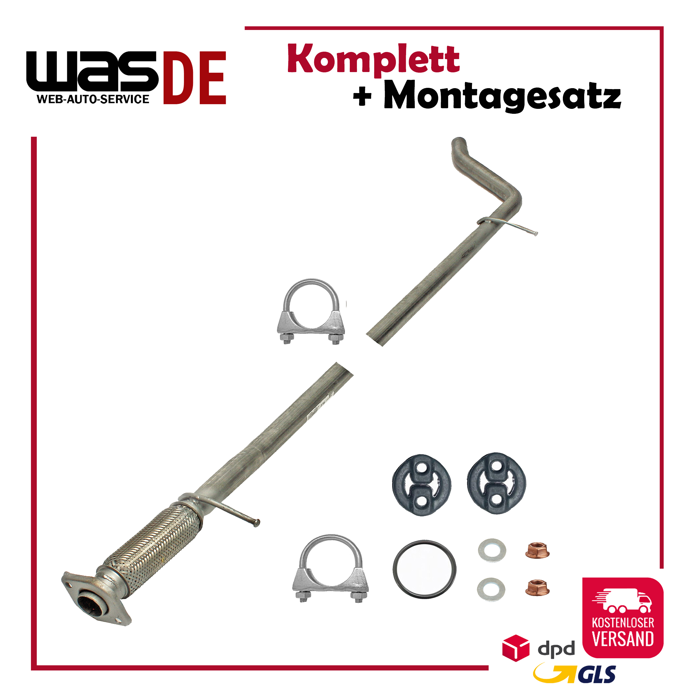 Auspuff, Auspuffanlage, Endschalldämpfer, ESD, Endtopf, Nachschalldämpfer, Schalldämpfer, Montagesatz, Montageteile, Abgasanlage, Anbaukit, Anbausatz, Auspuffteile