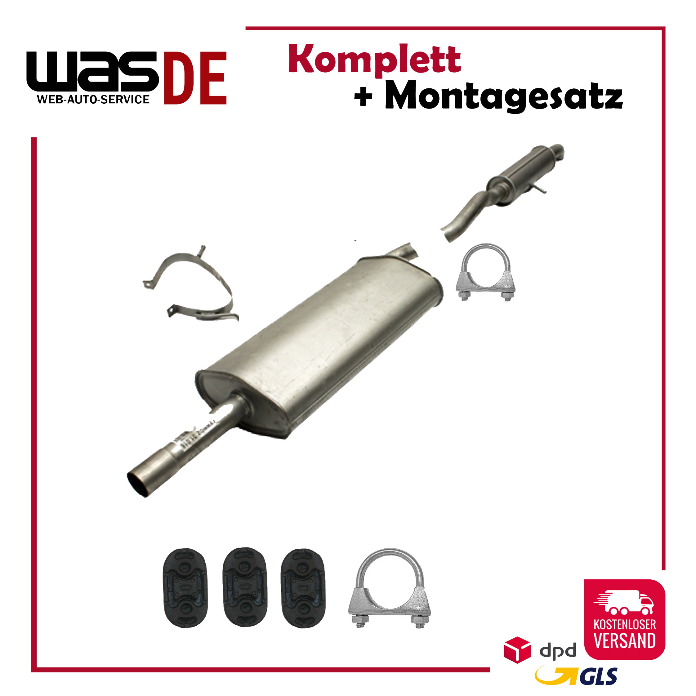Auspuff, Auspuffanlage, Endschalldämpfer, ESD, Schalldämpfer, Montagesatz, Montageteile, Abgasanlage, Anbaukit