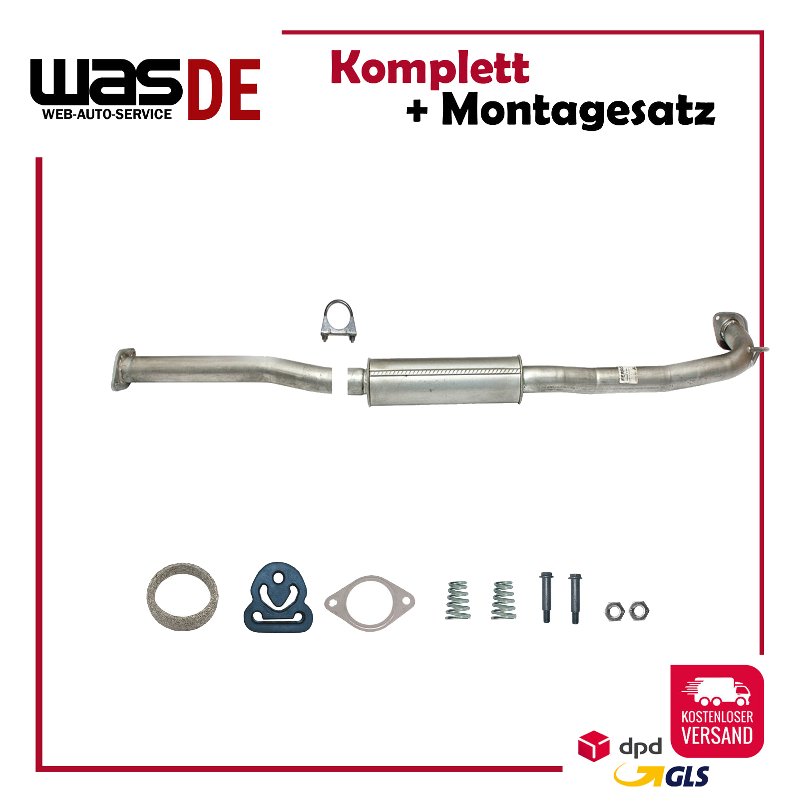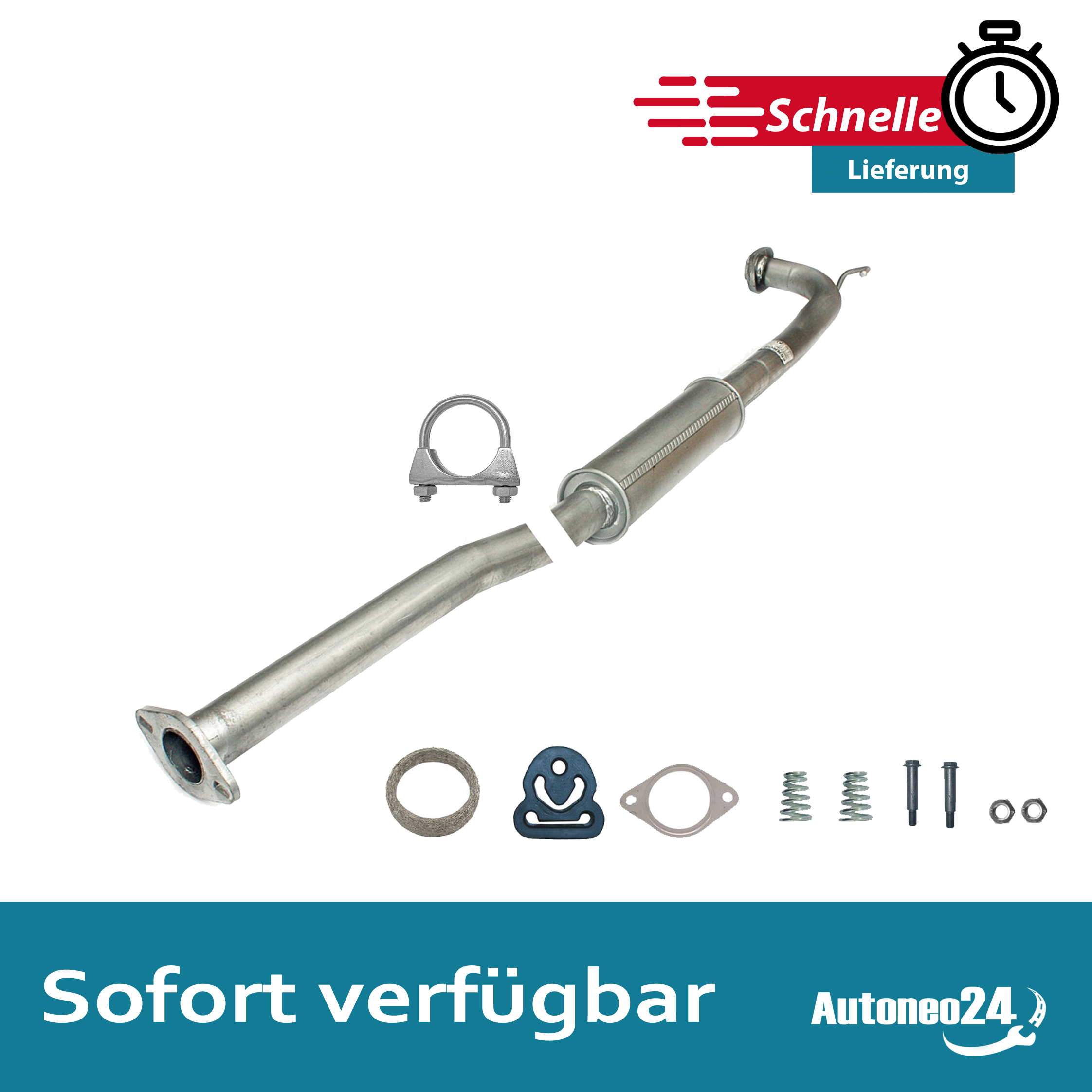 Auspuff, Auspuffanlage, Mittelschalldämpfer, MSD, Schalldämpfer, Montagesatz, Montageteile, Abgasanlage, Anbaukit