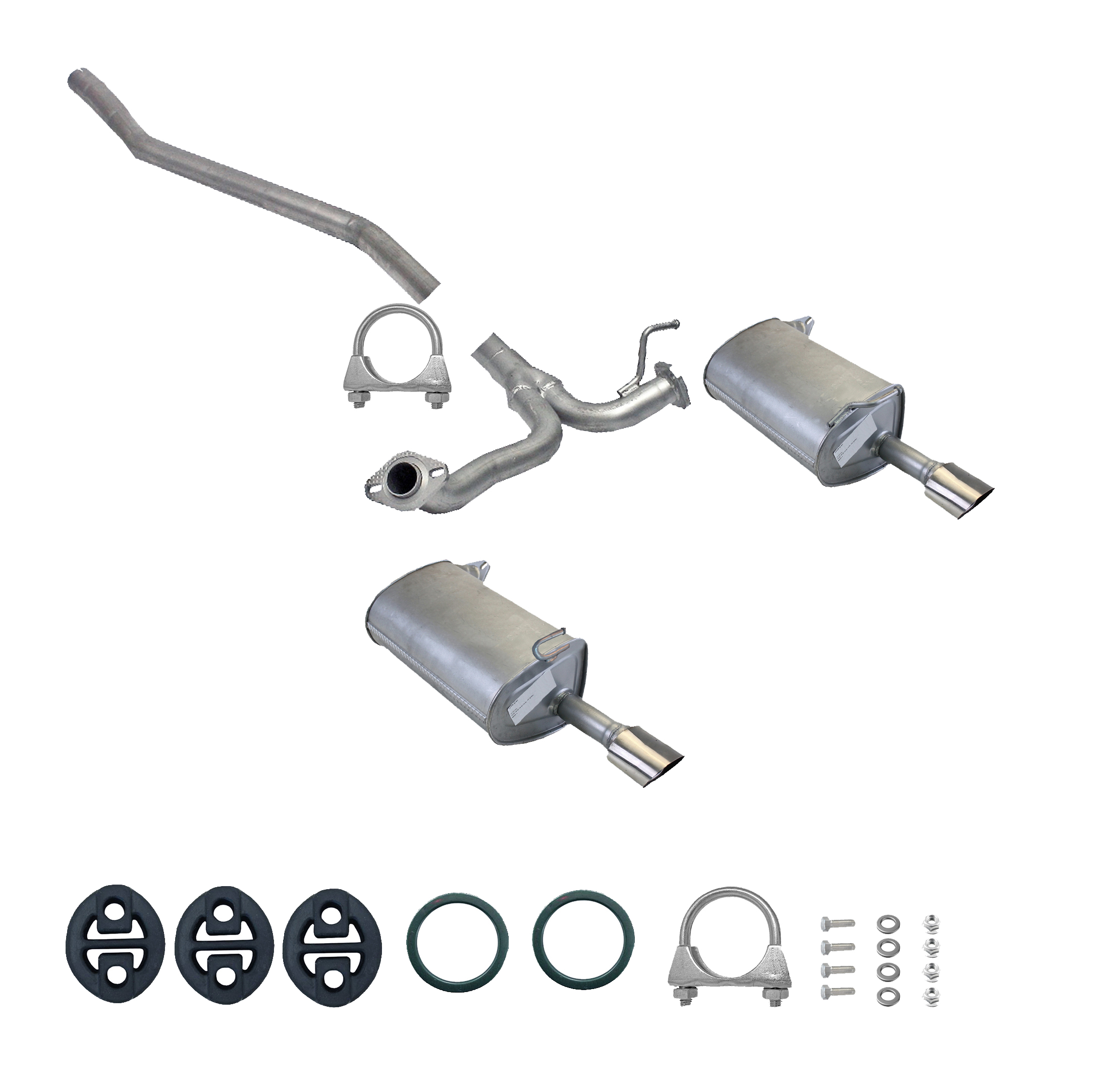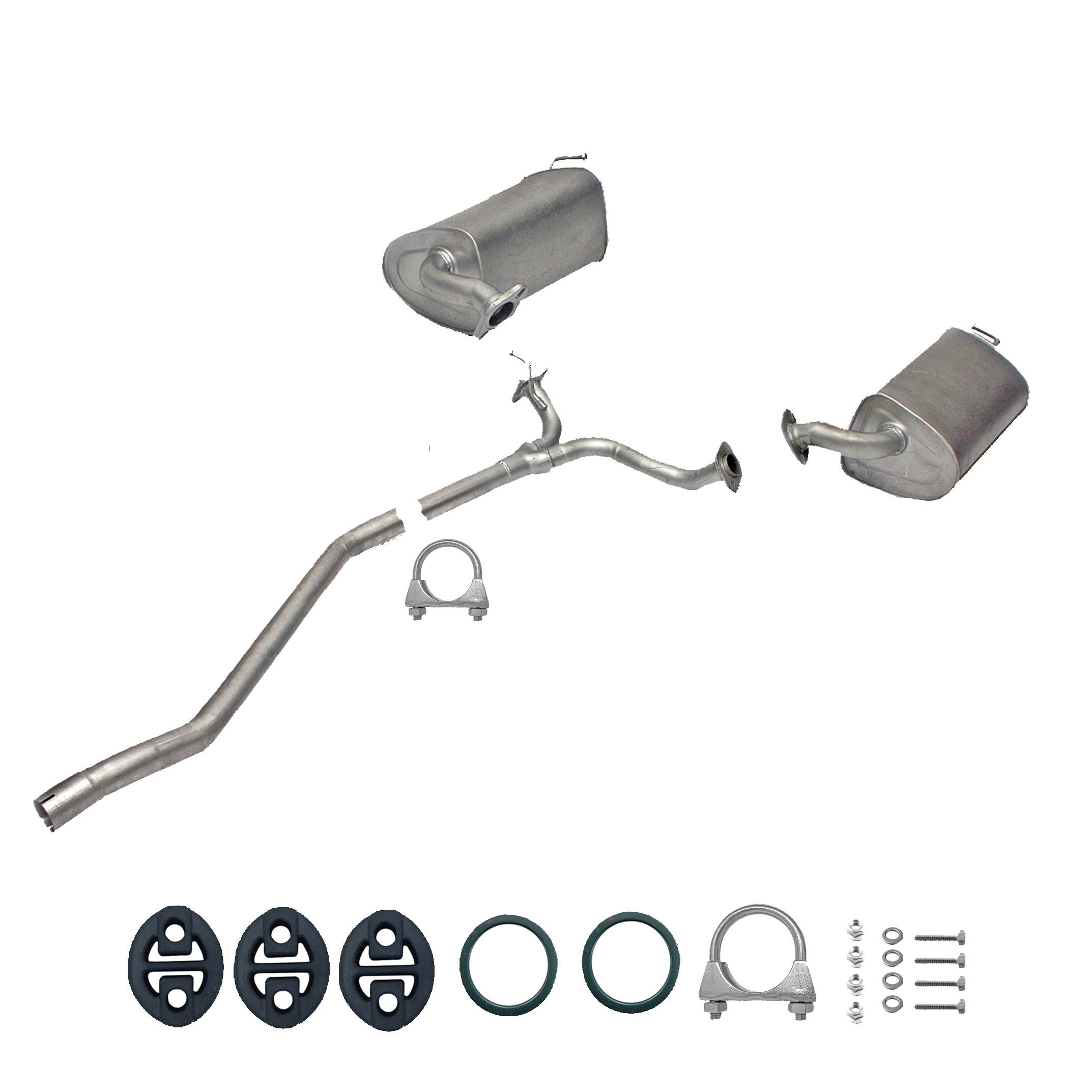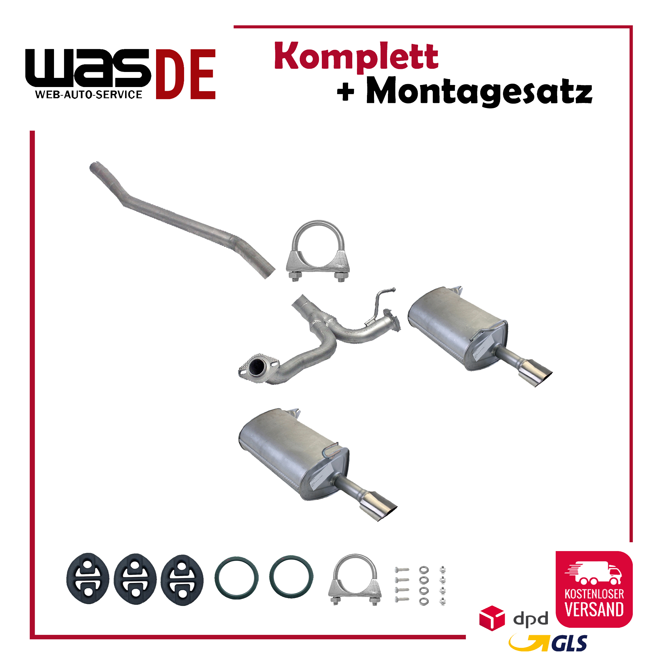 Auspuff, Auspuffanlage, Mittelschalldämpfer, MSD, Endschalldämpfer, ESD, Nachschalldämpfer, Schalldämpfer, Montagesatz, Montageteile, Abgasanlage, Anbaukit