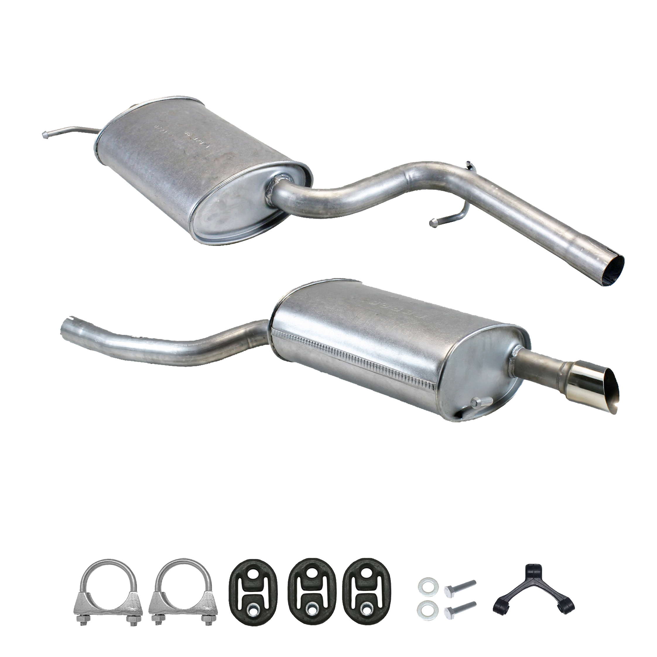 Auspuff, Auspuffanlage, Mittelschalldämpfer, MSD, Endschalldämpfer, ESD, Nachschalldämpfer, Schalldämpfer, Montagesatz, Montageteile, Abgasanlage, Anbaukit, Rohr