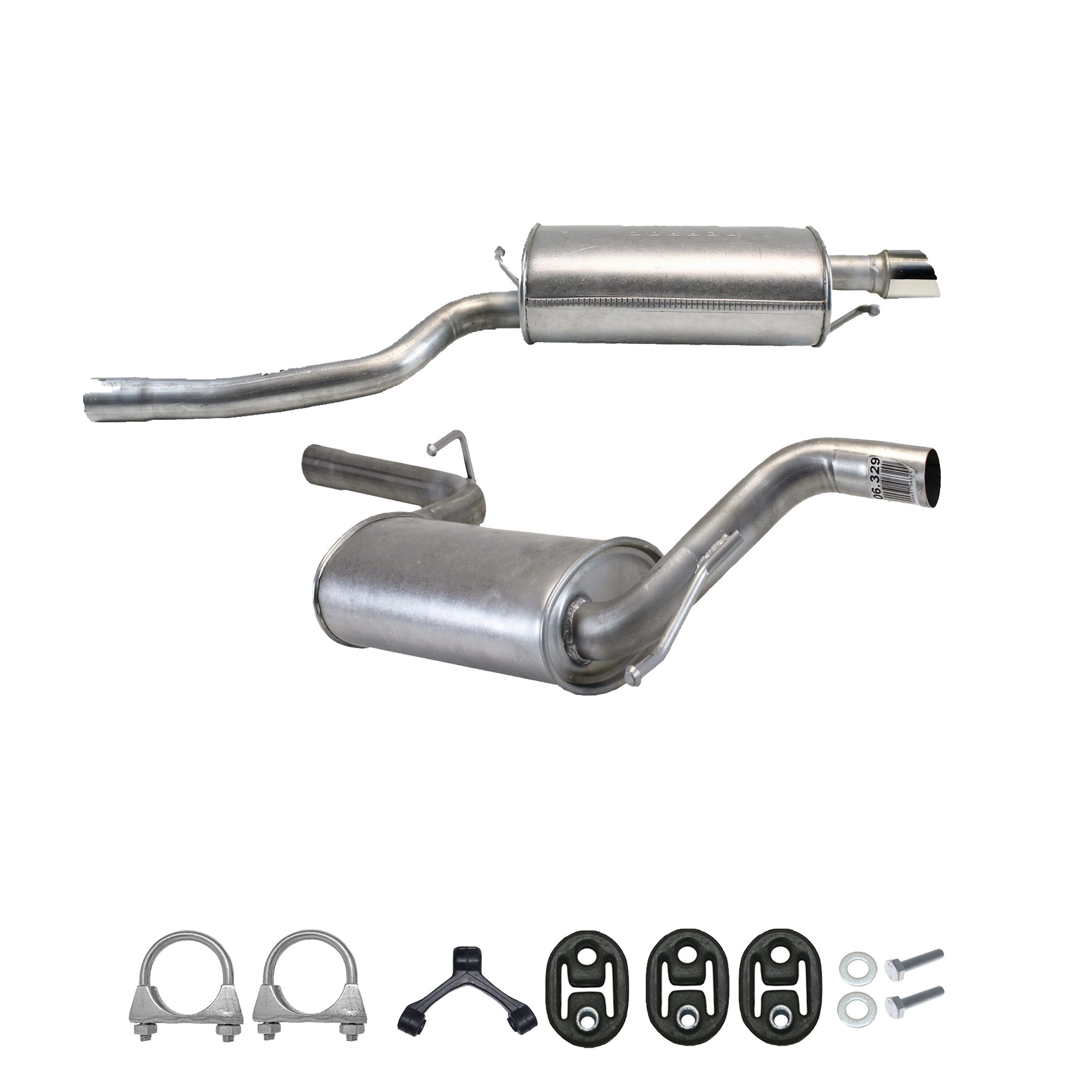 233-157, 01.50826, 144063, 3C0253409L, 233-159, 01.61144, 144070, 3C0253609Q, Auspuff, Auspuffanlage, Mittelschalldämpfer, MSD, Endschalldämpfer, ESD, Nachschalldämpfer, Schalldämpfer, Montagesatz, Montageteile, Abgasanlage, Anbaukit, Rohr