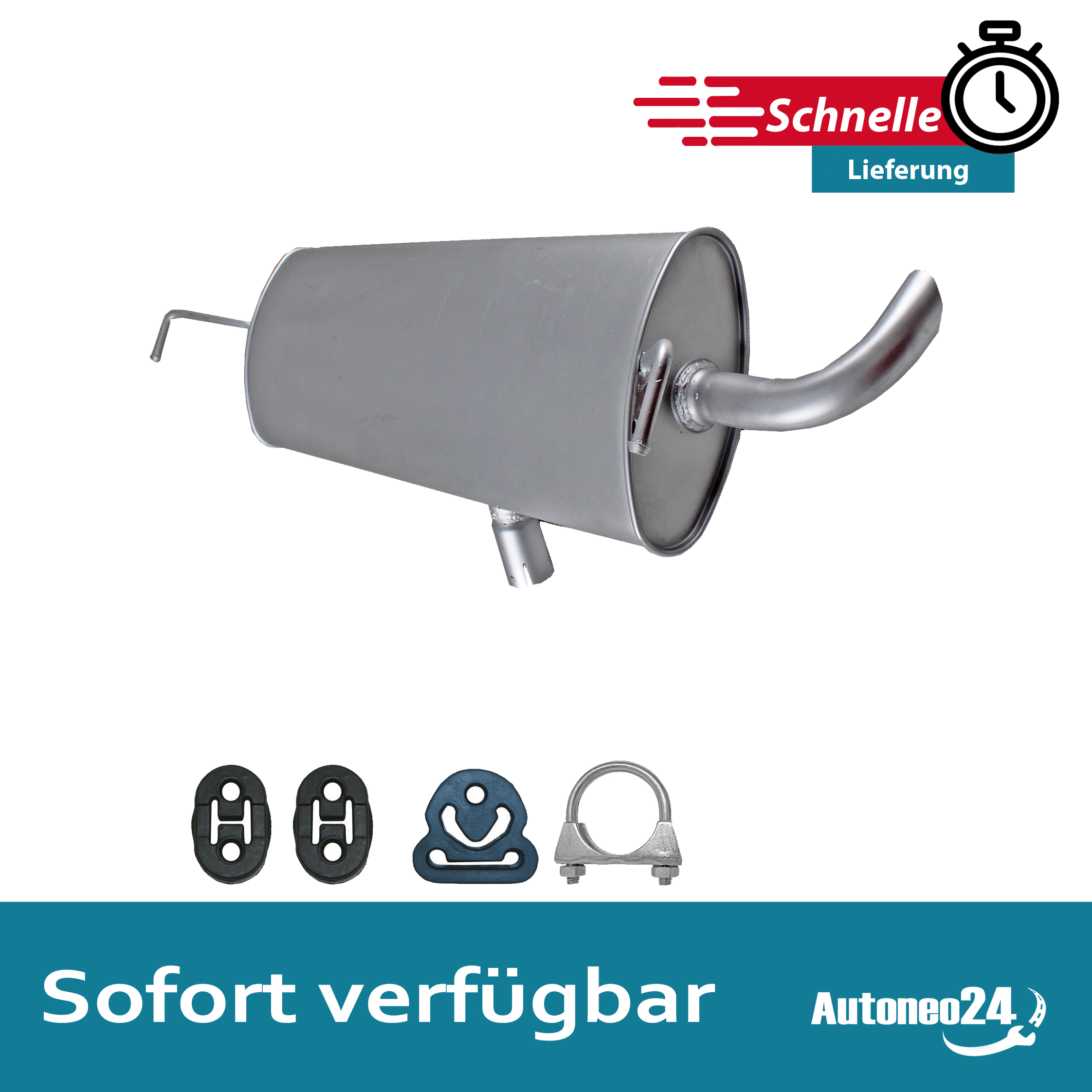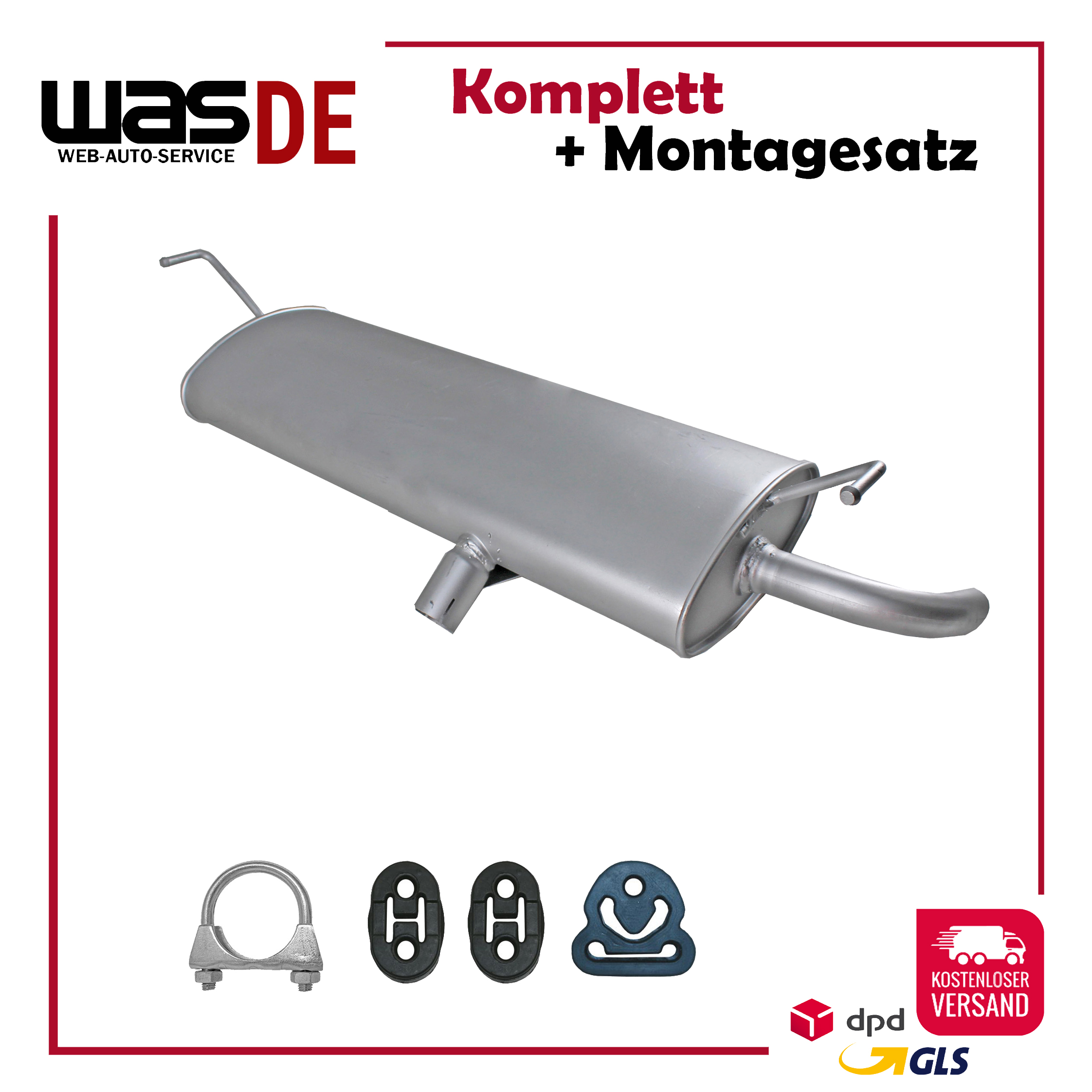 Auspuff, Endschalldämpfer, ESD, Endtopf, Nachschalldämpfer, Schalldämpfer, Montagesatz, Montageteile, Abgasanlage, Anbaukit, Anbausatz, Auspuffteile