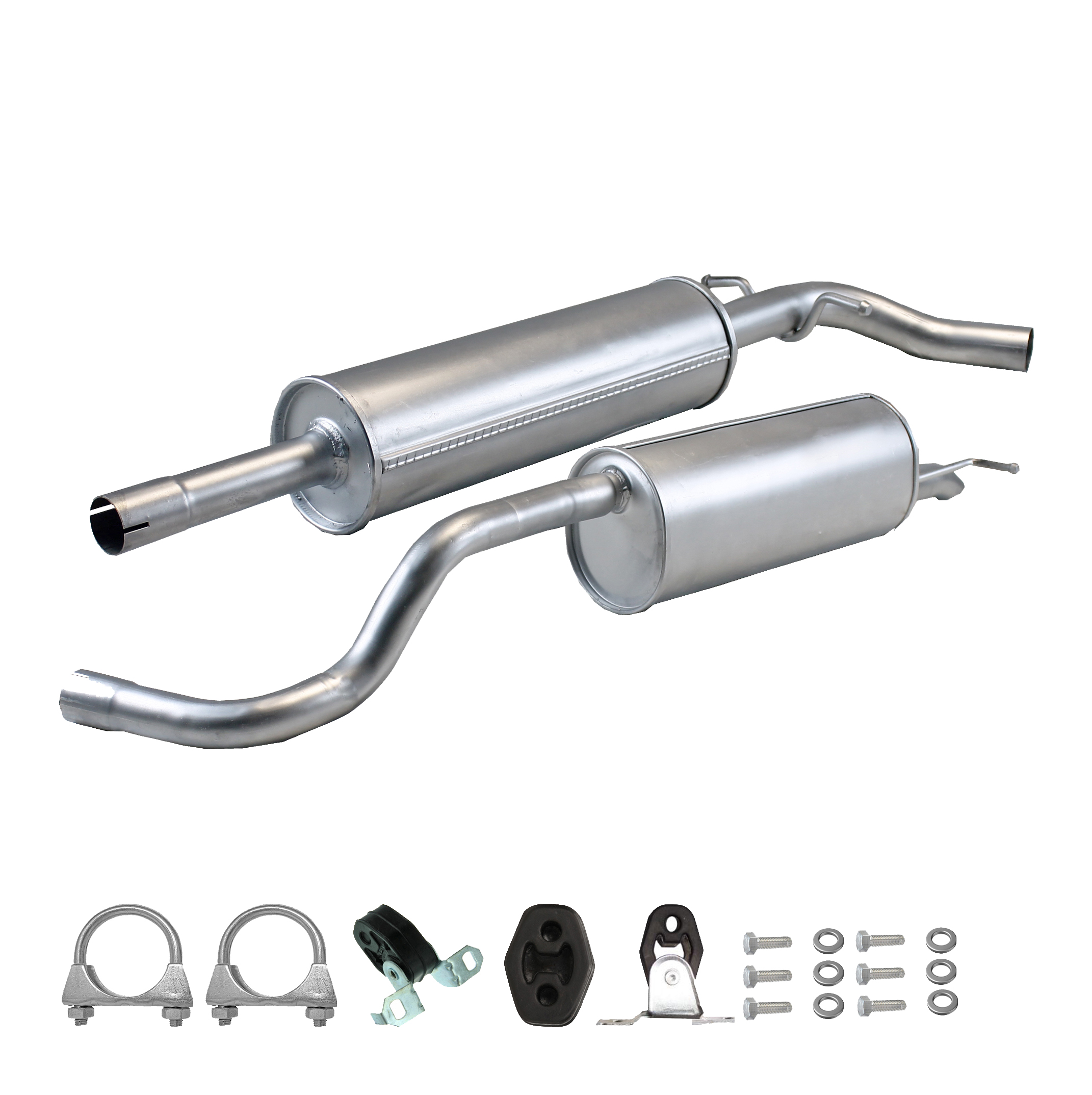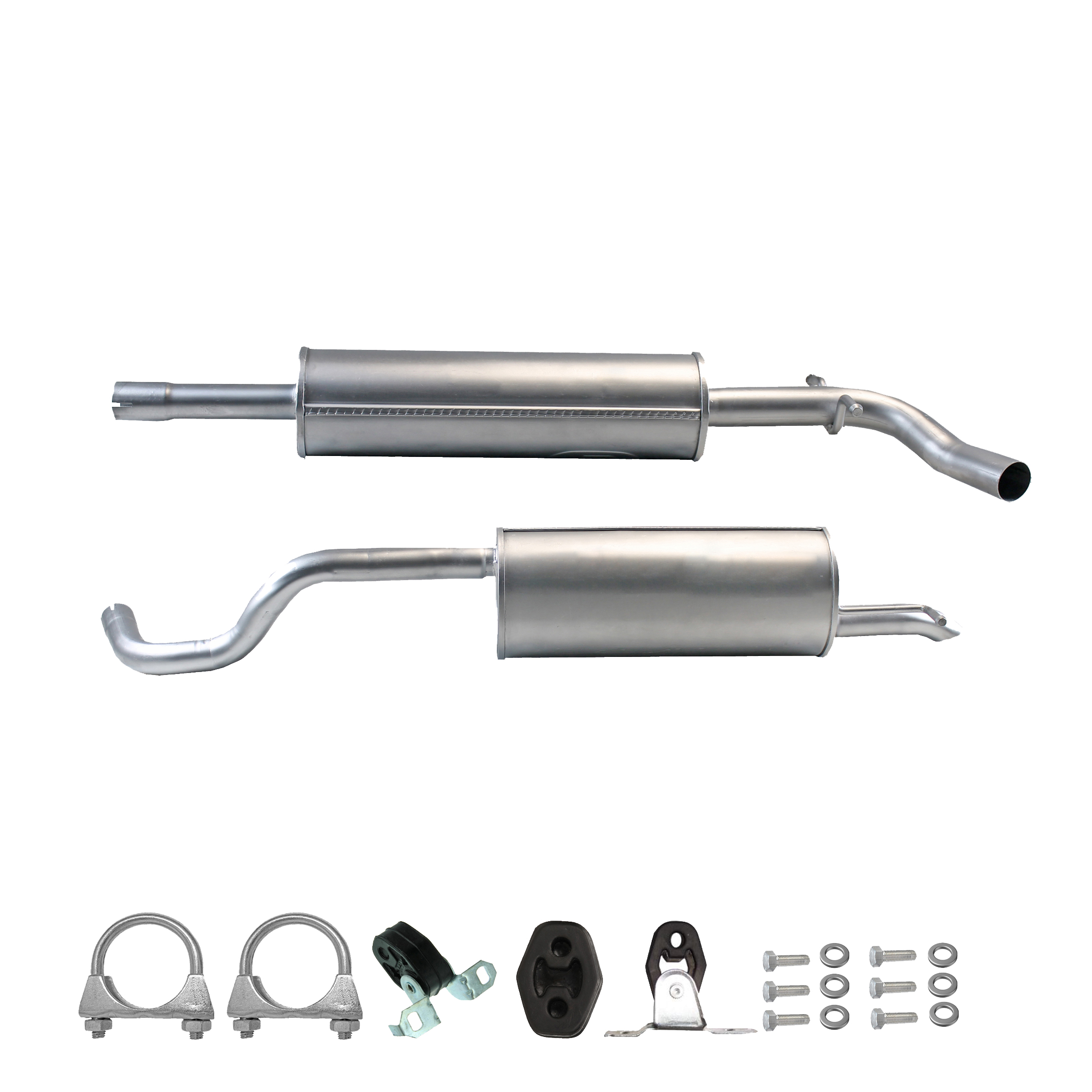 * Tłumiki posiadają system wygłuszający na bazie włókna szklanego dzięki temu nie zmienia się głośność układu wydechowego. * Produkt nie wymaga spawania !