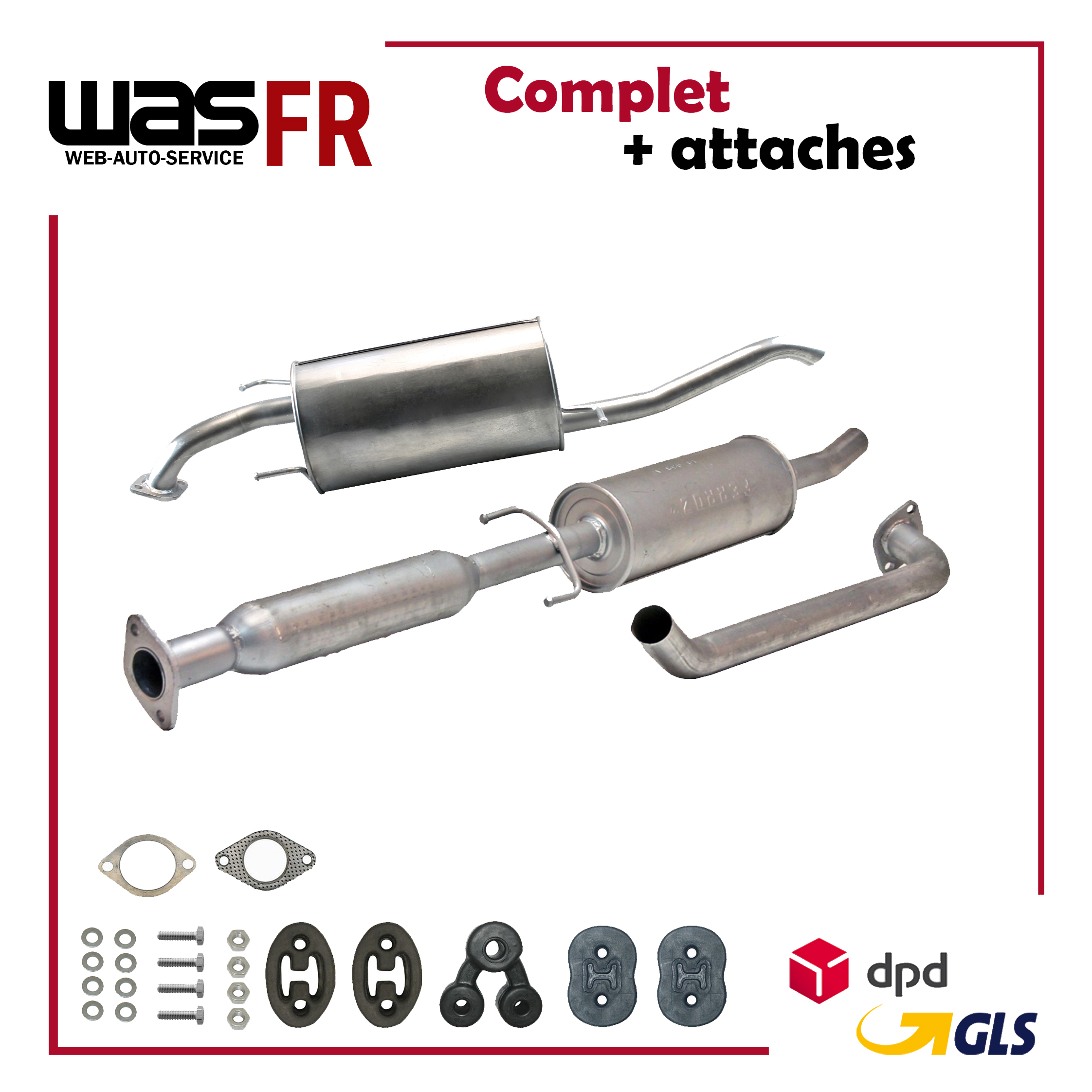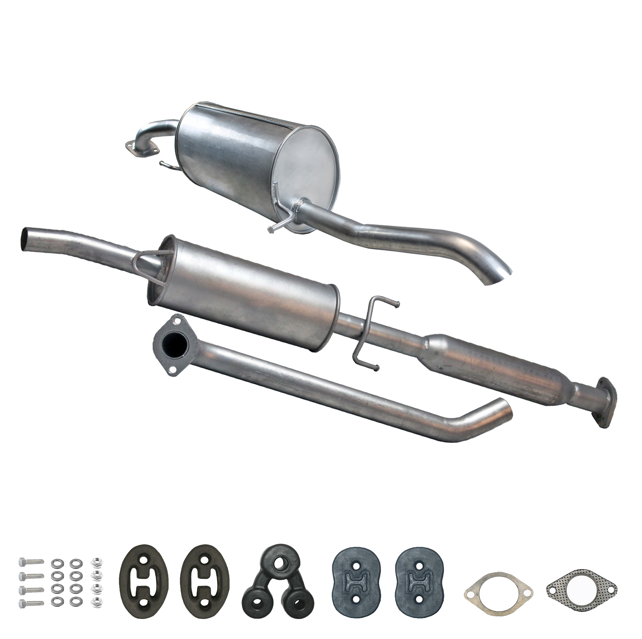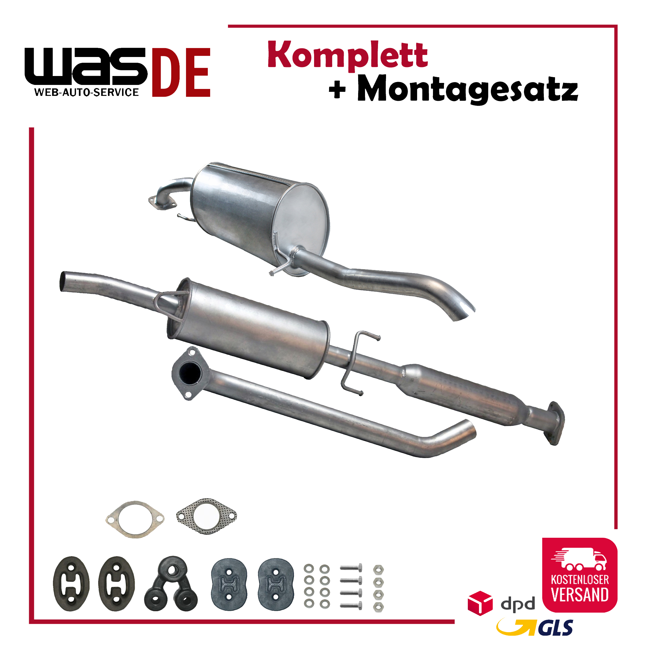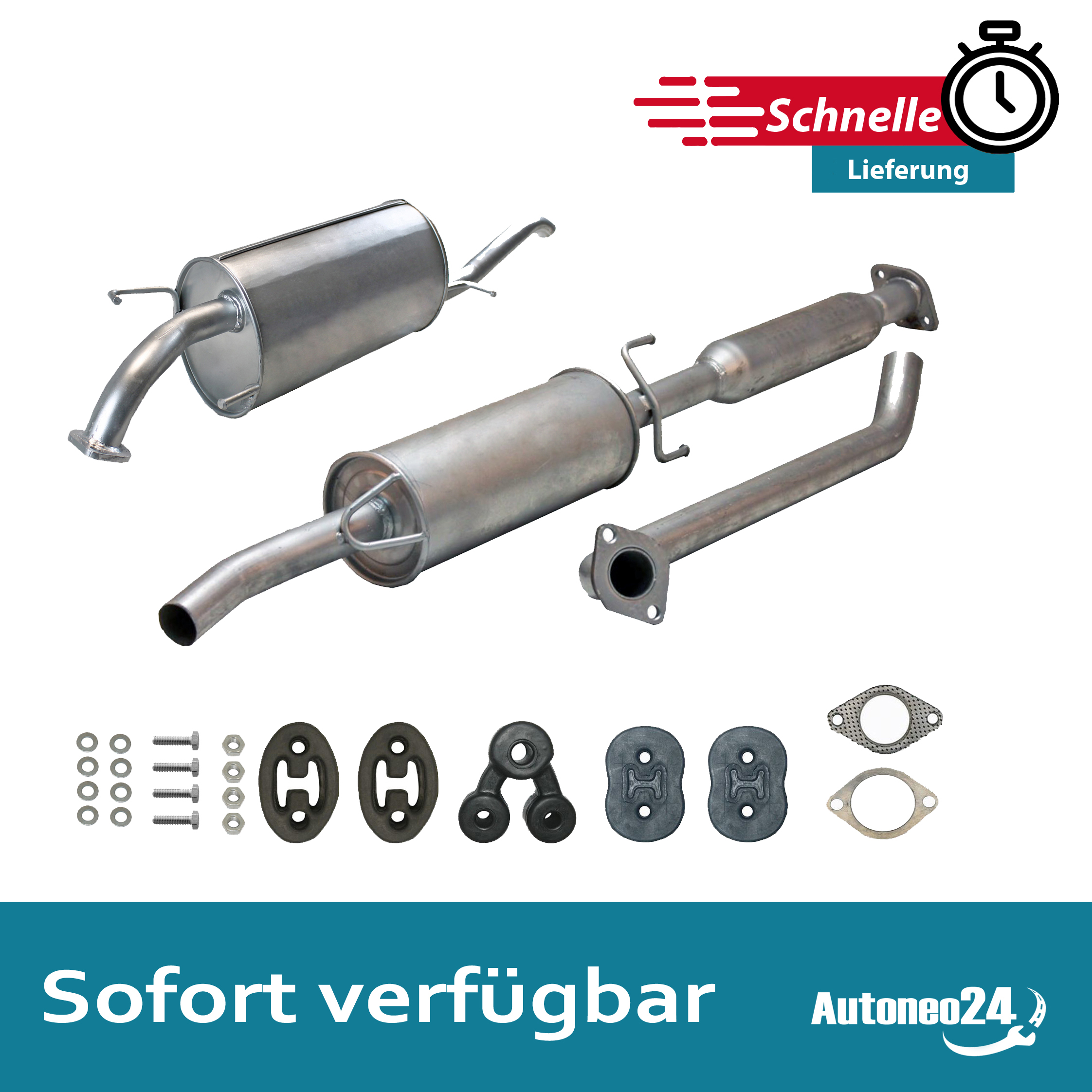 Auspuff, Auspuffanlage, Mittelschalldämpfer, MSD, Endschalldämpfer, ESD, Nachschalldämpfer, Schalldämpfer, Montagesatz, Montageteile, Abgasanlage, Anbaukit