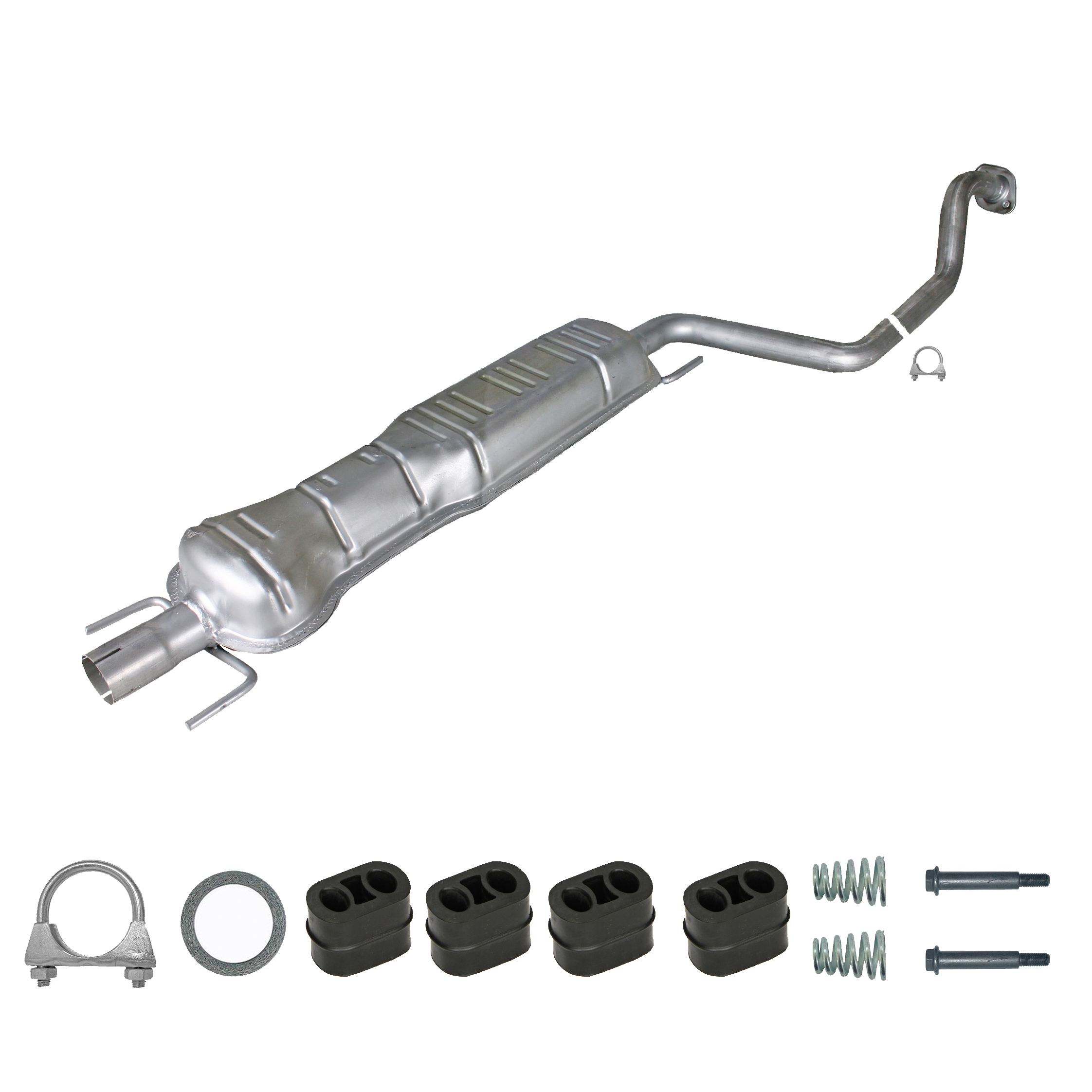 * Tłumiki posiadają system wygłuszający na bazie włókna szklanego dzięki temu nie zmienia się głośność układu wydechowego. * Produkt nie wymaga spawania !