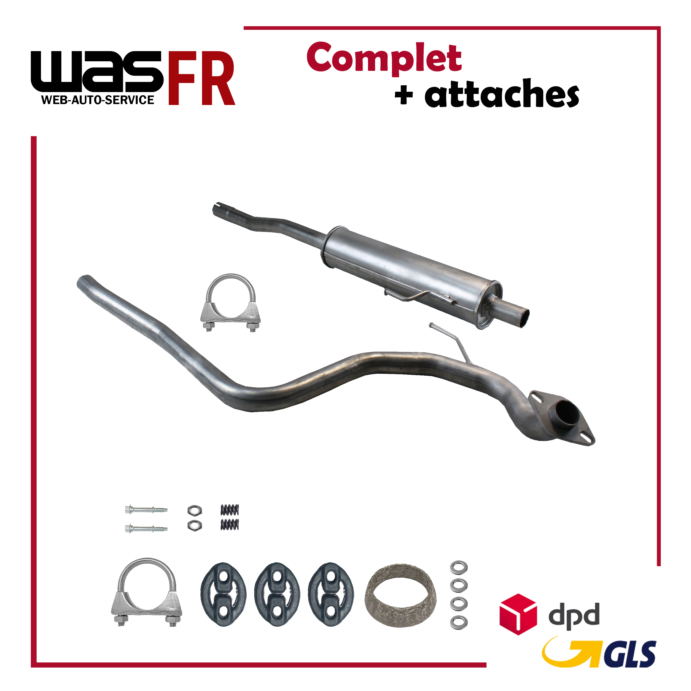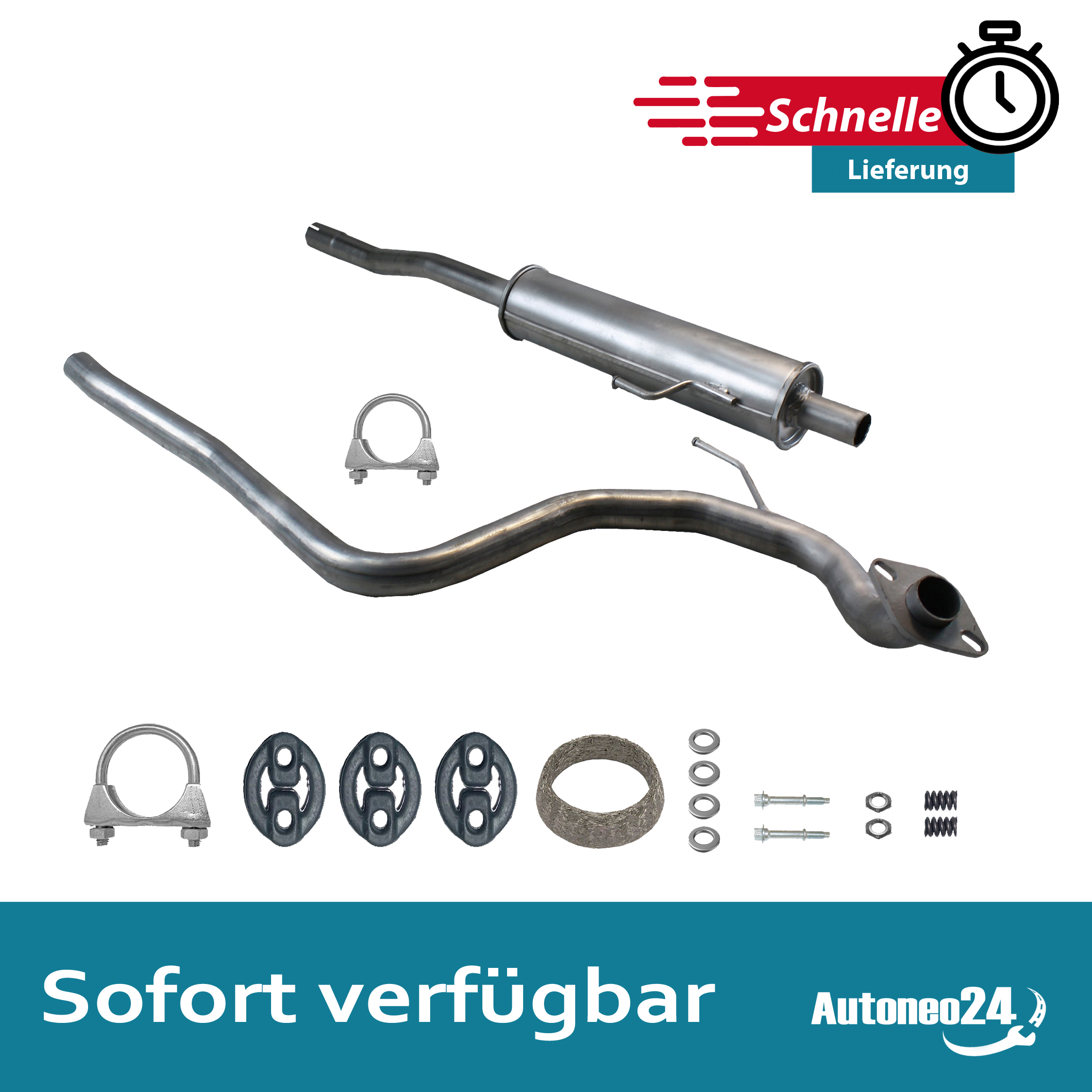 Auspuff, Auspuffanlage, Mittelschalldämpfer, MSD, Mitteltopf, Schalldämpfer, Montagesatz, Montageteile, Abgasanlage, Anbaukit, Anbausatz, Auspuffteile