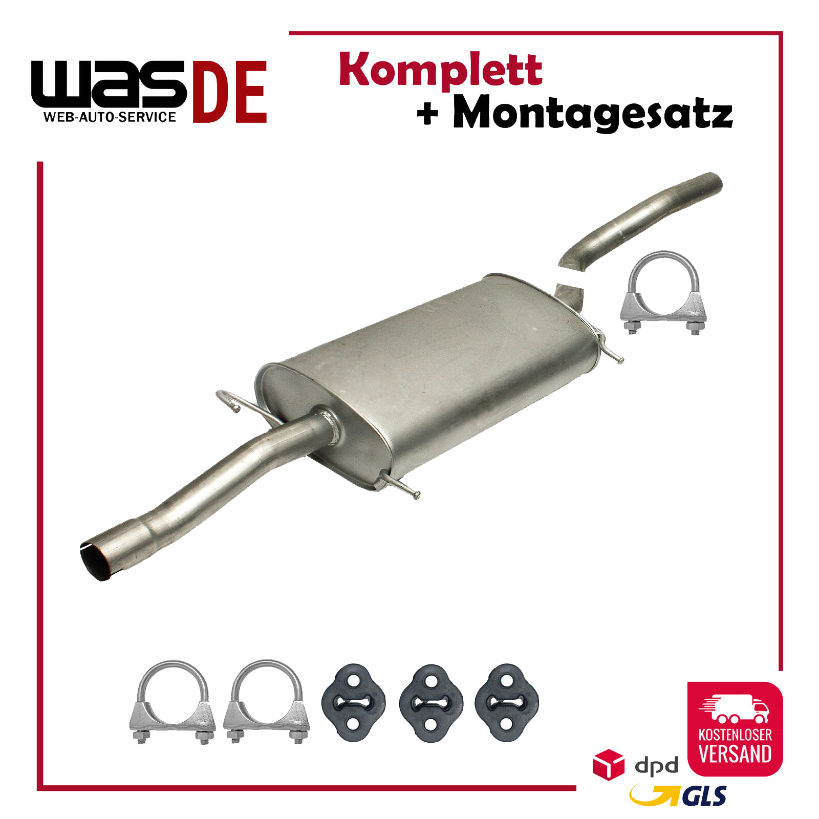 Auspuff, Auspuffanlage, Mittelschalldämpfer, MSD, Schalldämpfer, Montagesatz, Montageteile, Abgasanlage, Anbaukit
