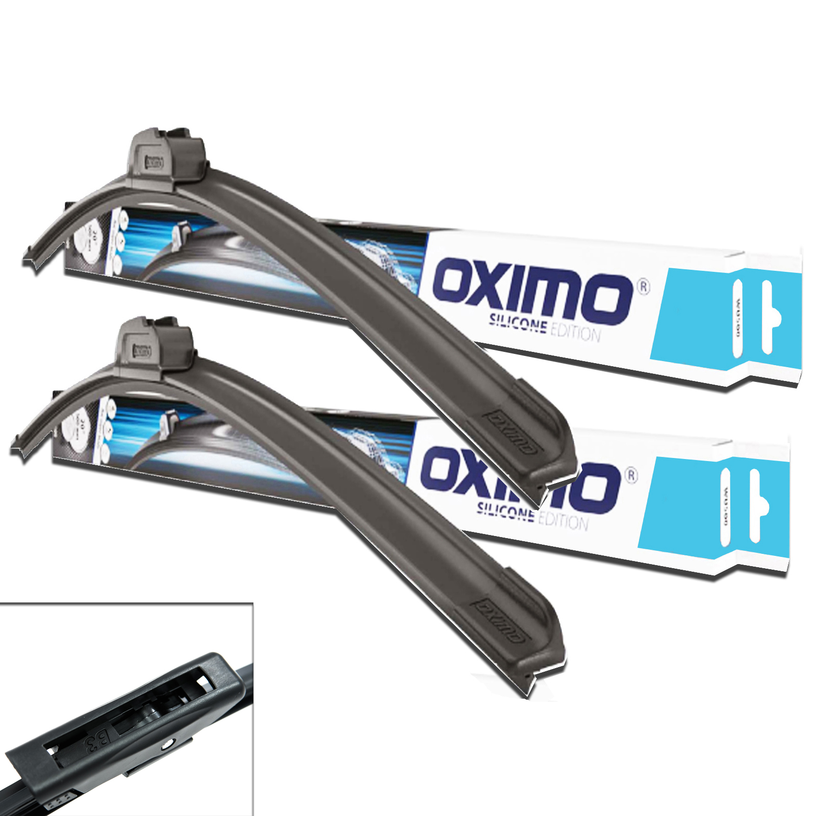 | Material | Naturkautschuk beschichtet mit Silikon (Wischerblatt), Galvanisierter Kohlenstoffstahl (Stahlteile der Schiene und der Befestigung), Hochwertige Polyethylen- und Polycarbonat-Legierung (Kunststoffteile) |